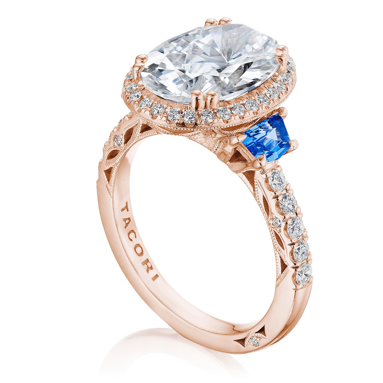 Oval 3-Stone Engagement Ring with Blue Sapphire