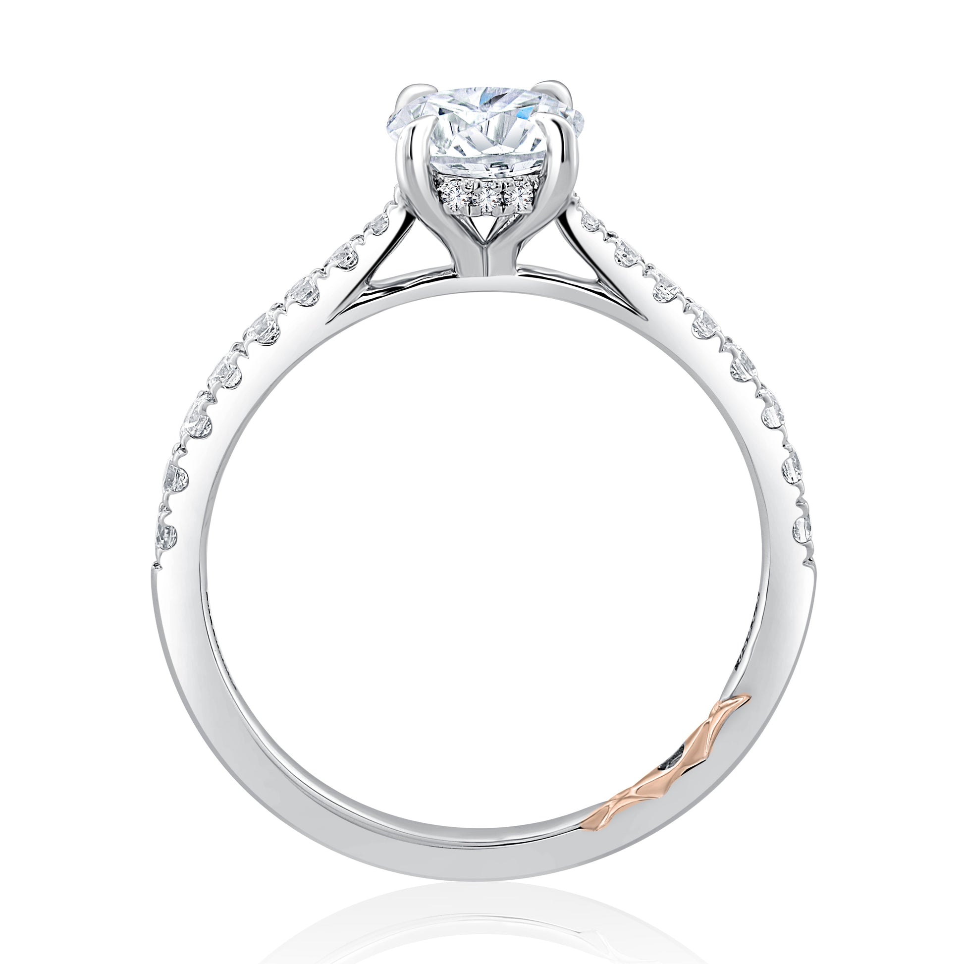 Oval Cut Center Hidden Halo Engagement Ring with Pave Band MECOV2727/128B