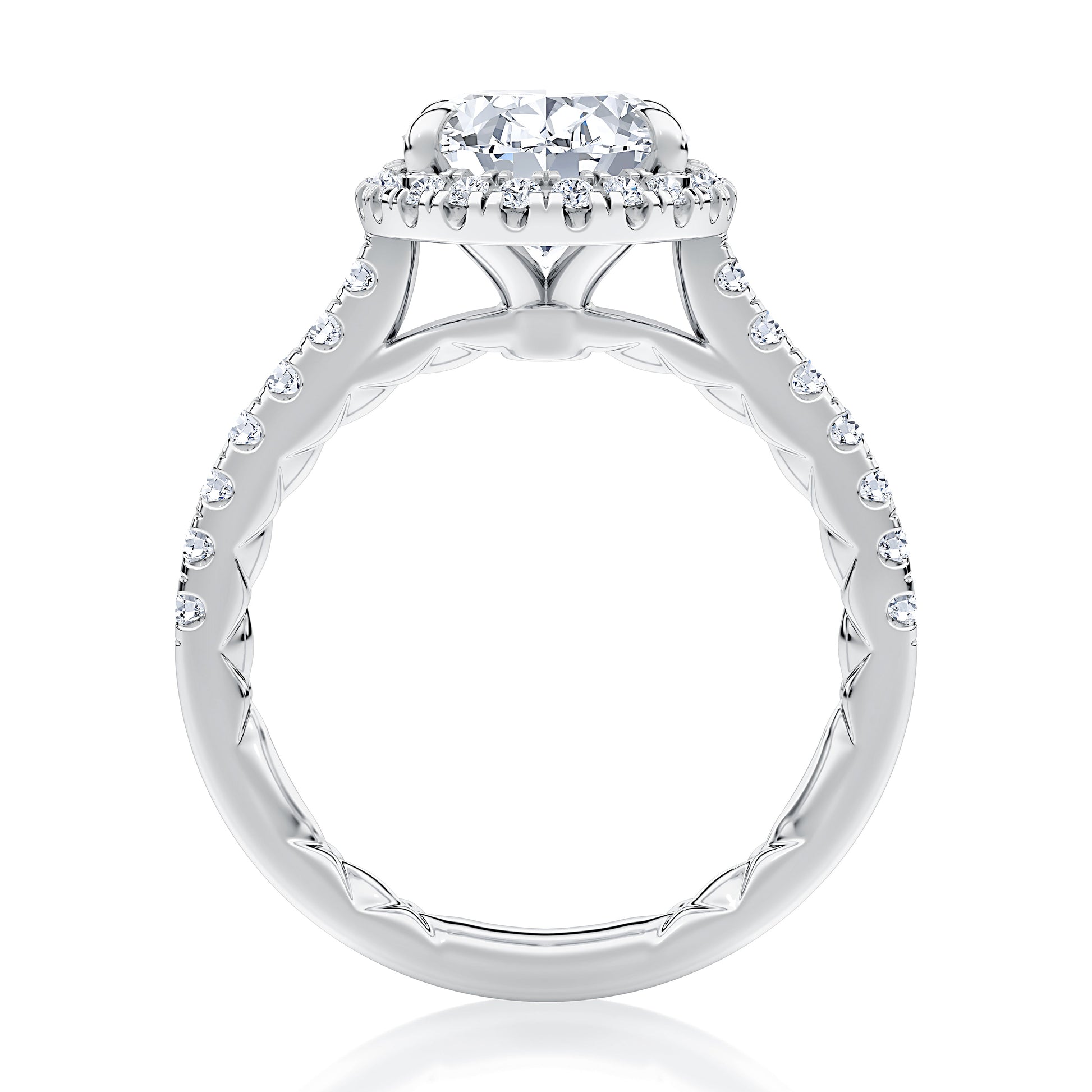 Oval Cut Diamond Engagement Ring with Oval Shaped Halo and Diamond Pave Band MECOV2920Q/163