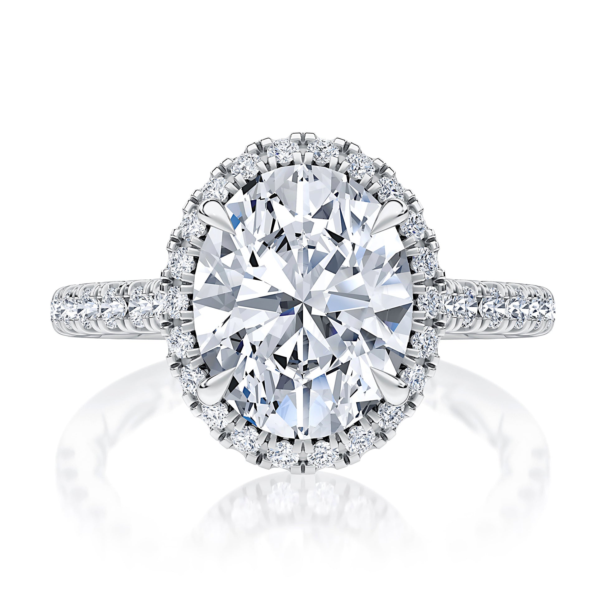 Oval Cut Diamond Engagement Ring with Oval Shaped Halo and Diamond Pave Band MECOV2920Q/239B