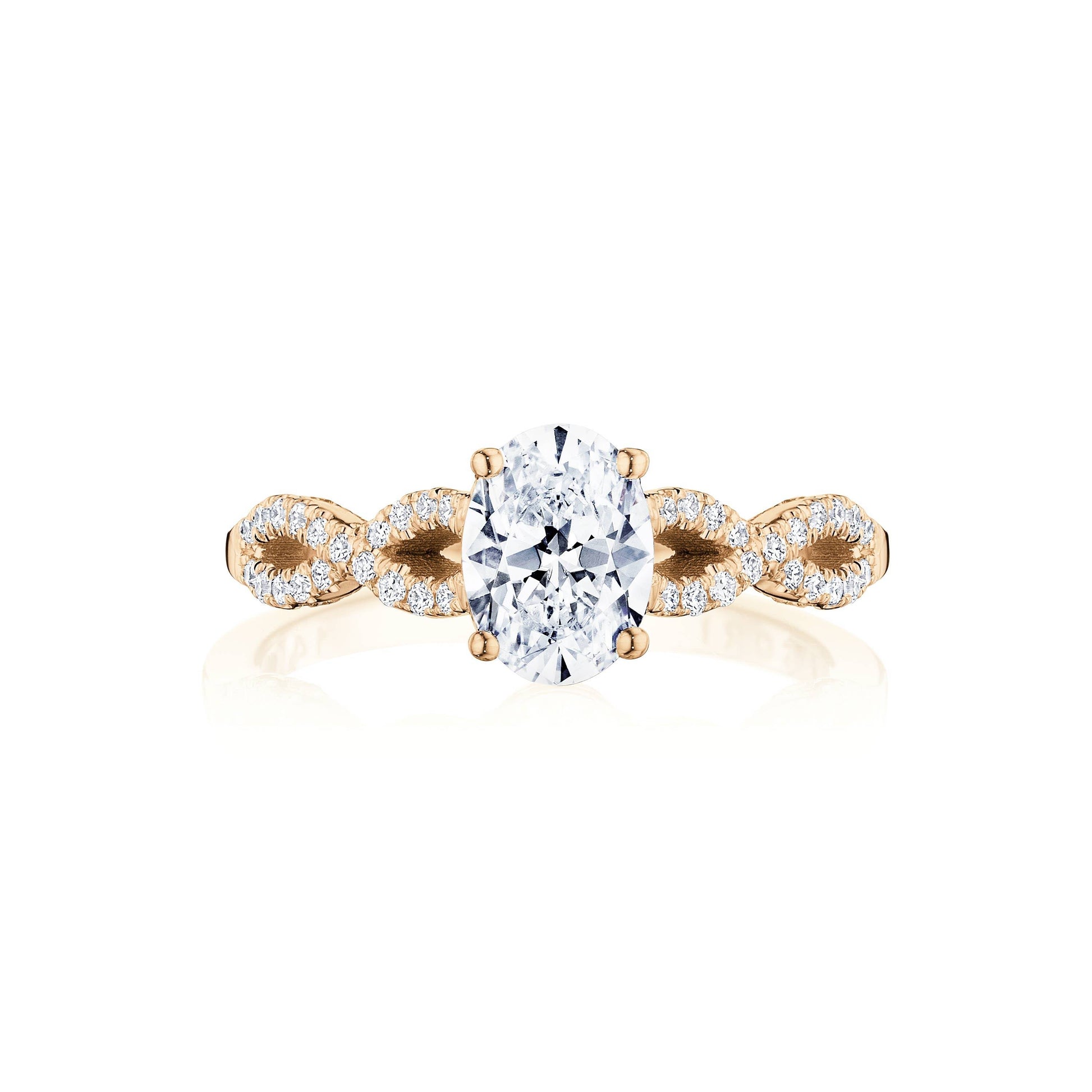 Put your own twist on the classic diamond engagement ring. Watch your oval cut center come to life in this ribbon design engagement ring, featuring the Coastal Crescent inner face with pinpoint diamond details.