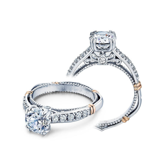 Elevate your love story with the exquisite Verragio Women's Engagement Ring and Matching Wedding Band from the Parisian Collection. Featuring 0.30ct of diamonds and rose gold wraps, this timeless piece is designed to enhance a center stone of up to 2.00ct Round.