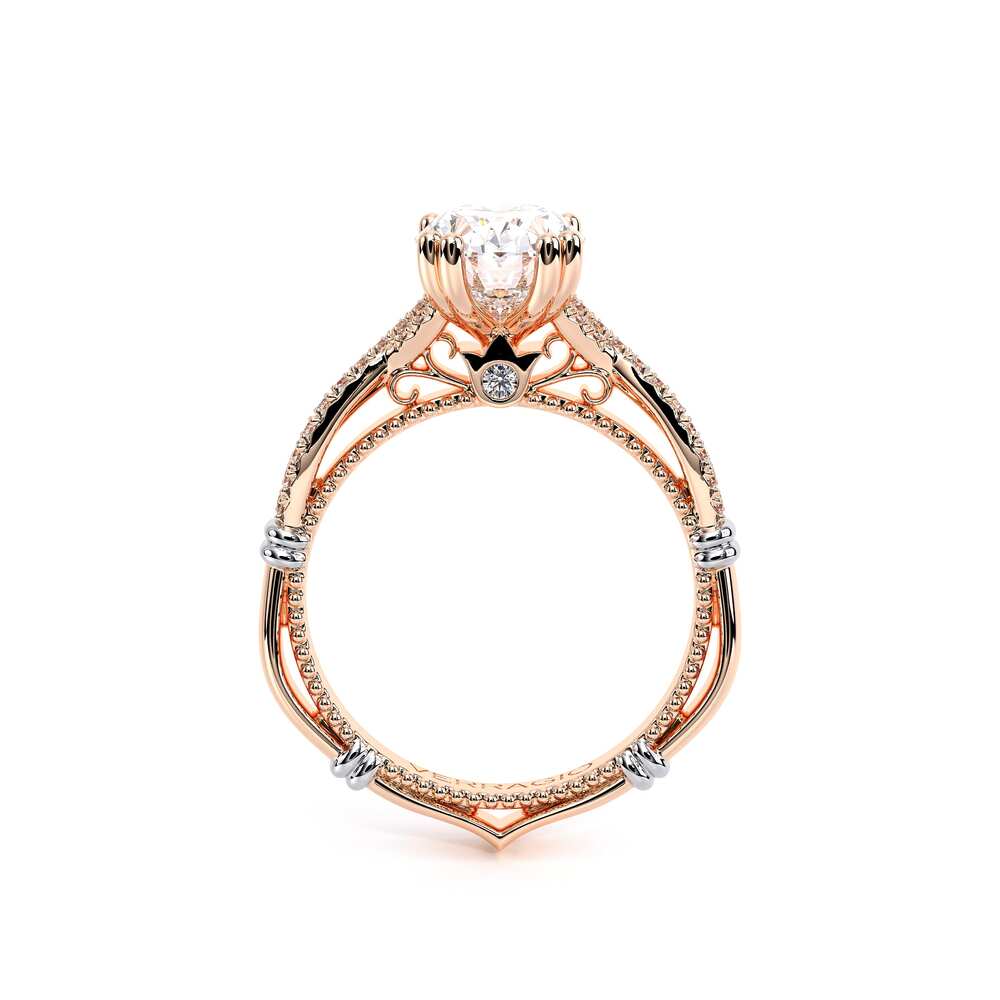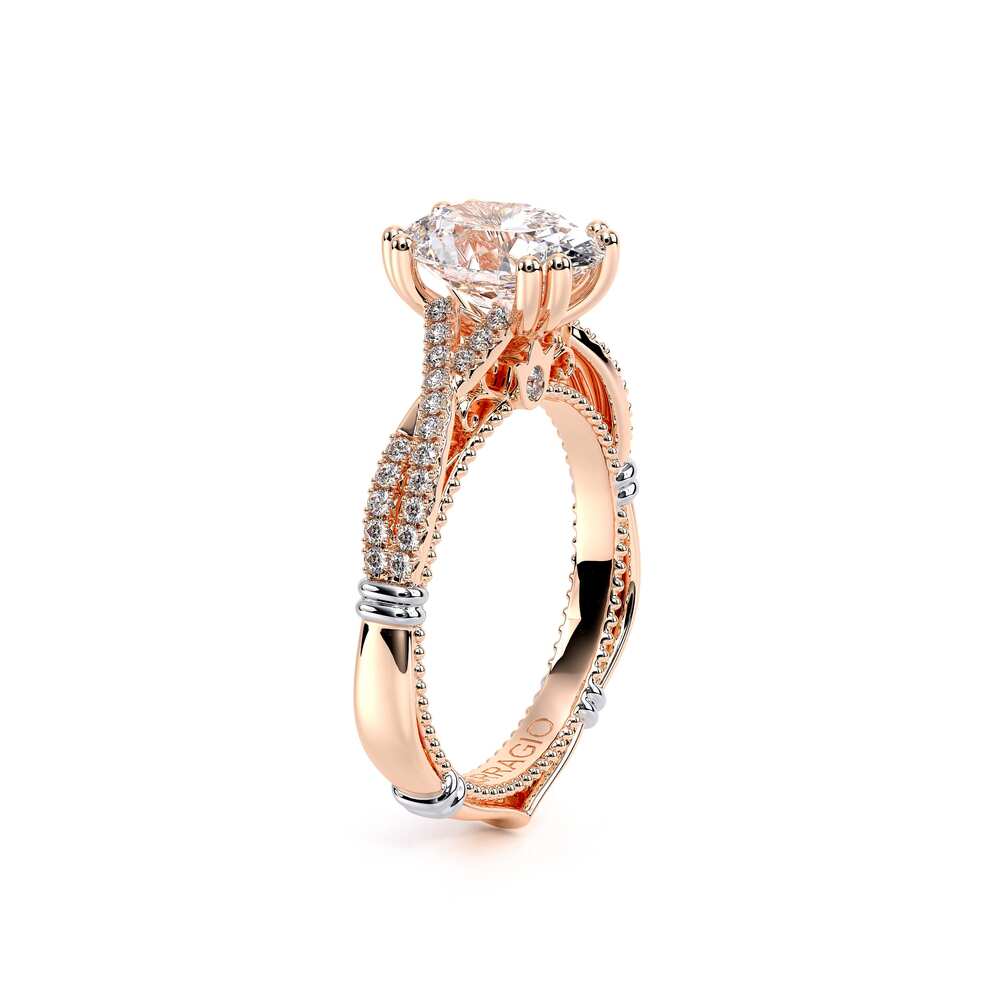 Parisian-105OV is a beautifully handcrafted twisted style engagement ring that features the Parisian Lace detail, our Verragio signature beading and Timeless wraps all adorned in rose gold for that extra sparkle.