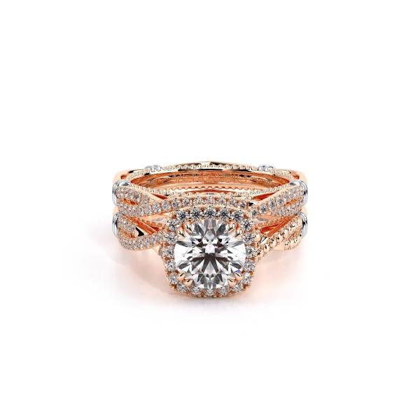 Elevate your love story with the timeless elegance of the Verragio Women's Engagement Ring from the Parisian collection. Featuring a twisted design, diamond cushion halo, Parisian Lace detail, and rose gold Timeless wraps, this stunning piece is the perfect symbol of love and commitment.