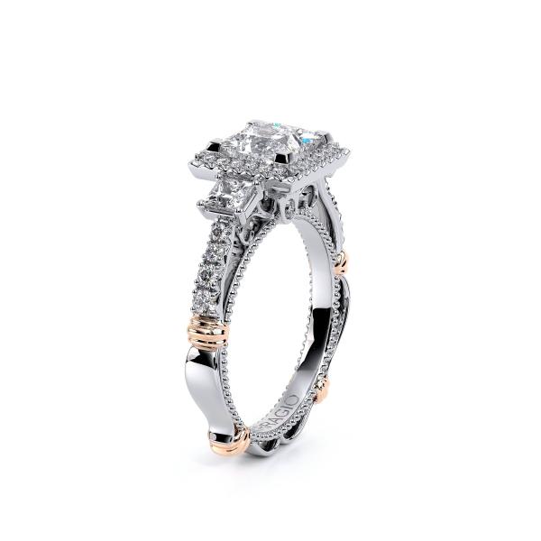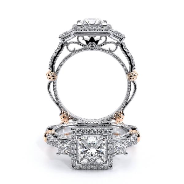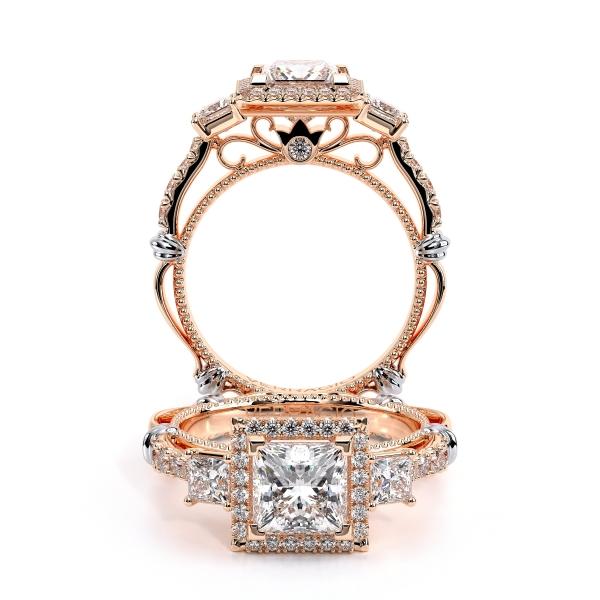 Elevate your love story with the exquisite Verragio Women's Engagement Ring and Matching Wedding Band, the PARISIAN-122W. Featuring a princess diamond halo and intricate rose gold wraps, this ring exudes vintage charm and elegance. Starting at $3,700.00 USD.