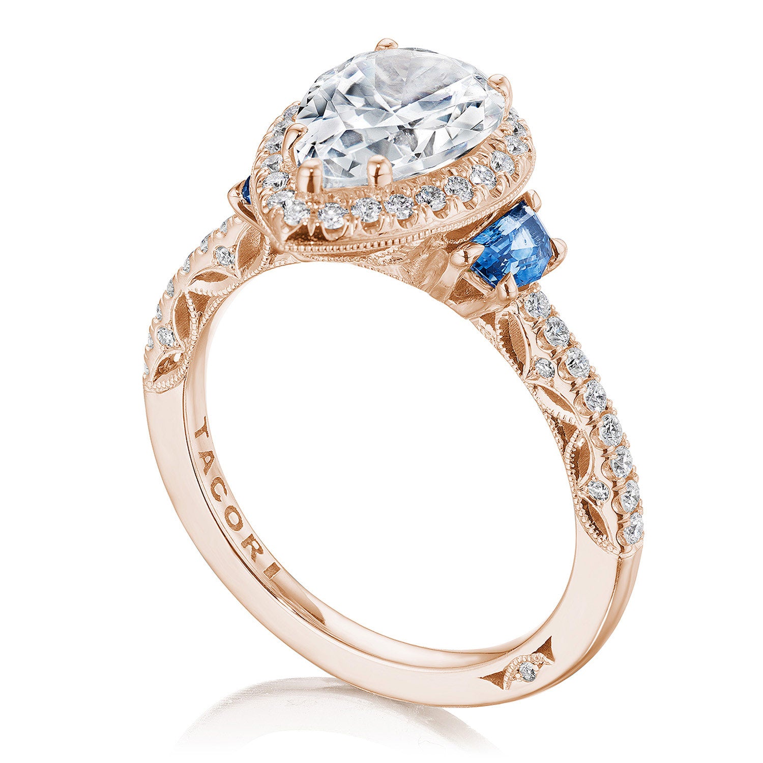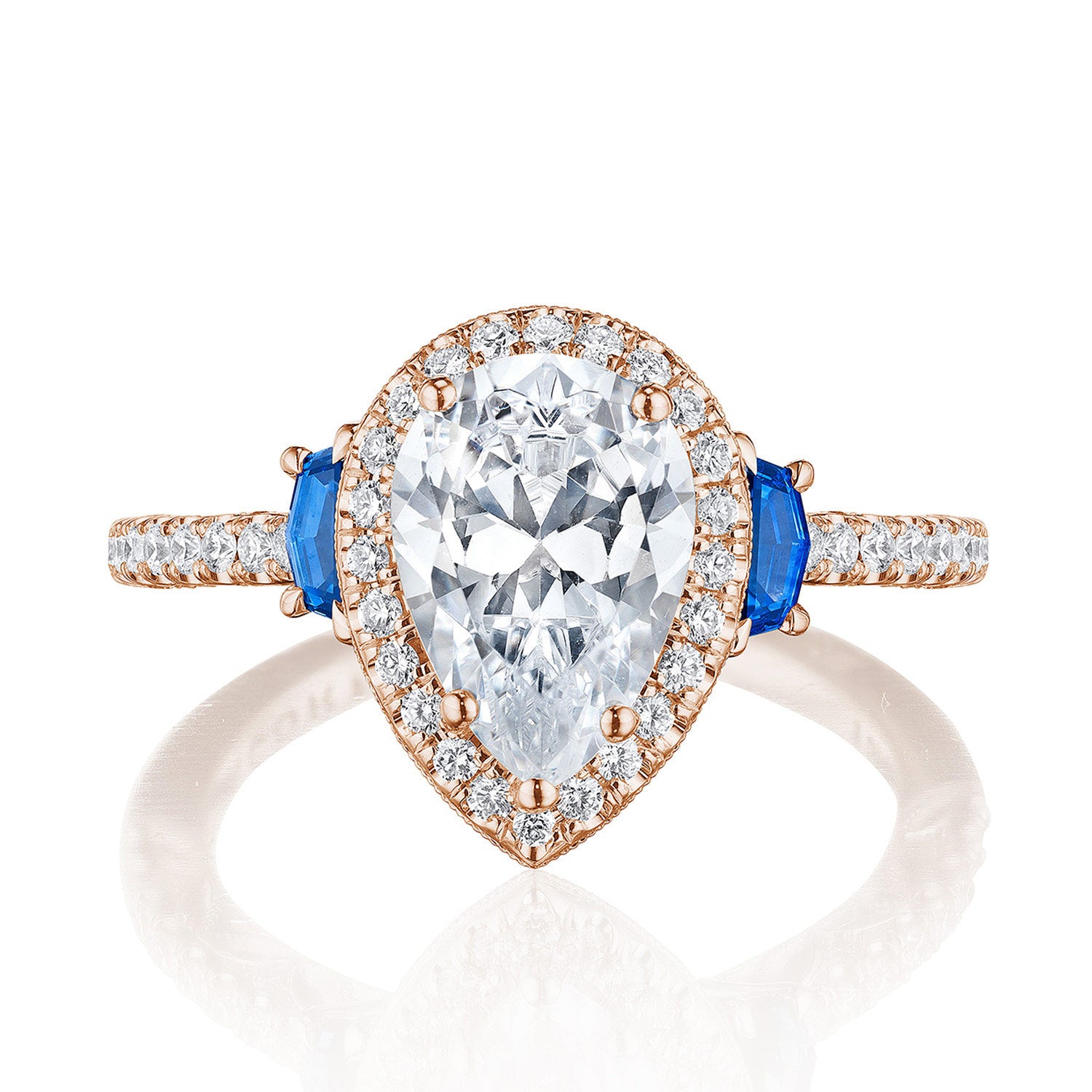 Pear 3-Stone Engagement Ring with Blue Sapphire