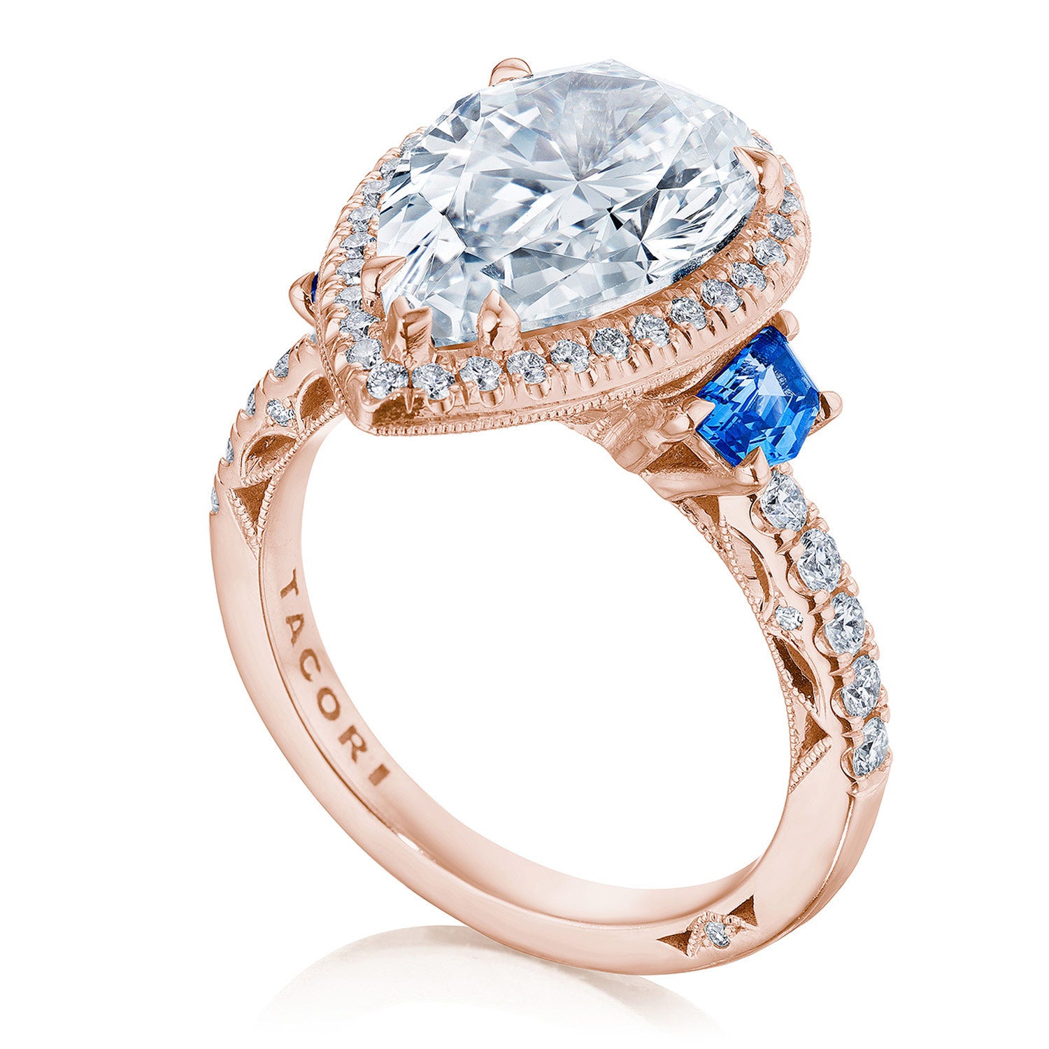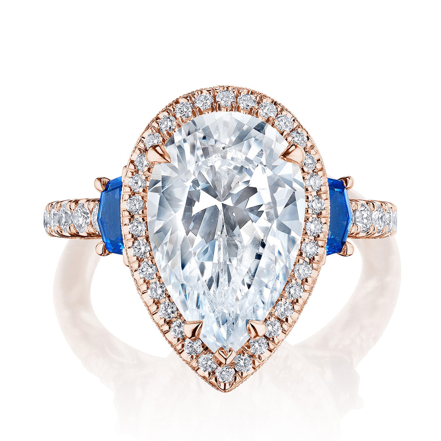 Pear 3-Stone Engagement Ring with Blue Sapphire