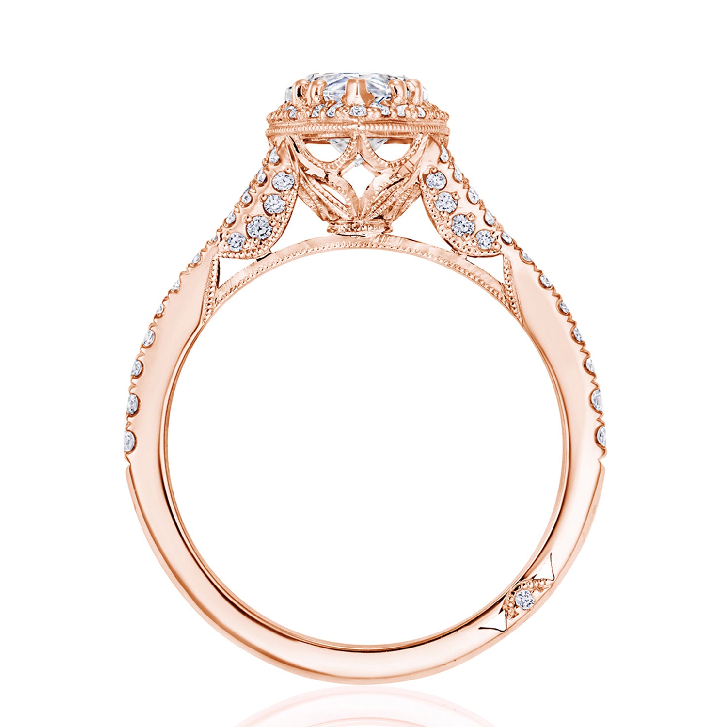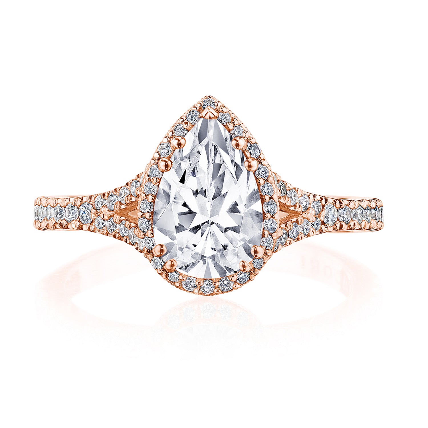 The prettiest new engagement ring from our iconic Dantela collection, the foundation of this ring reaches towards the pear shape center with open arms.