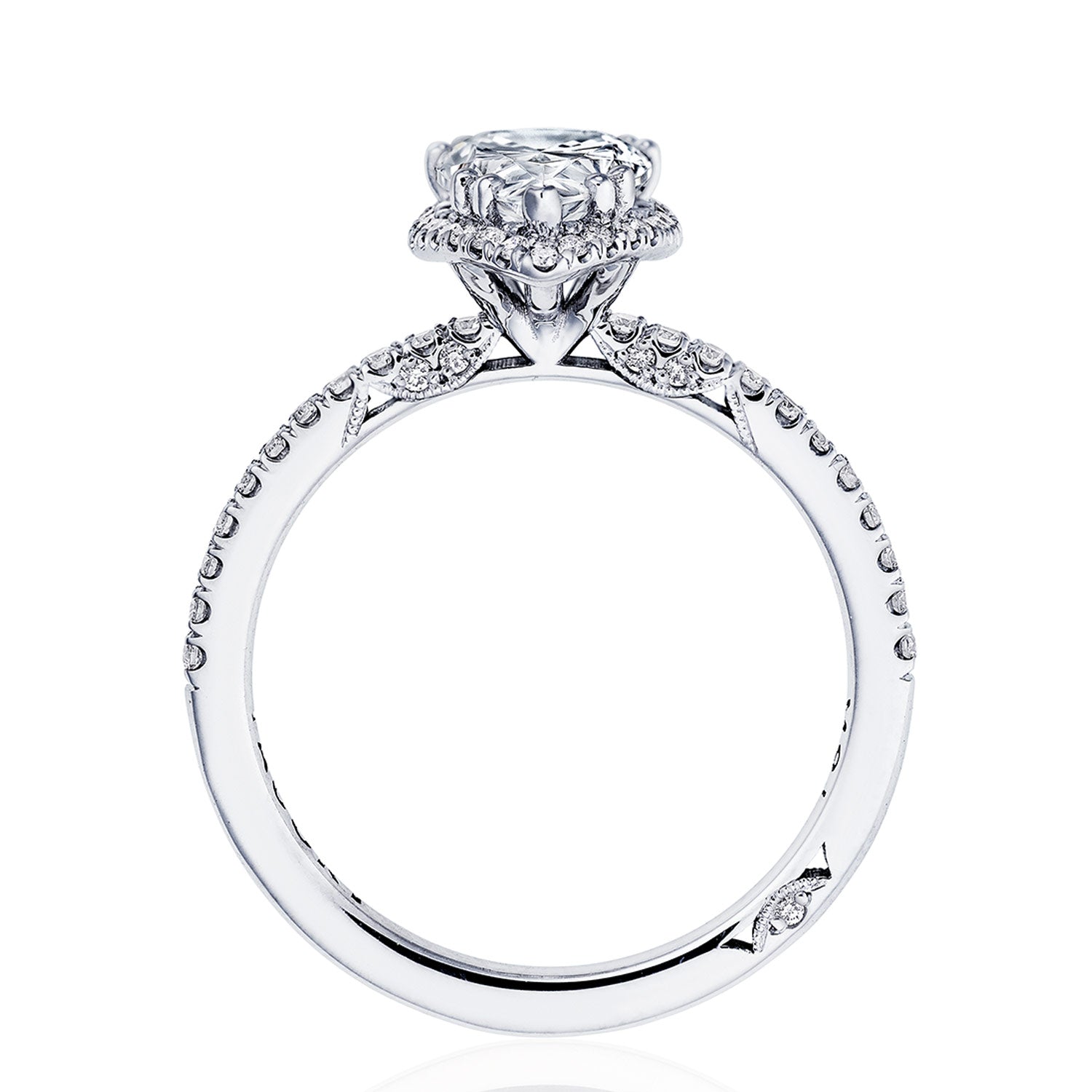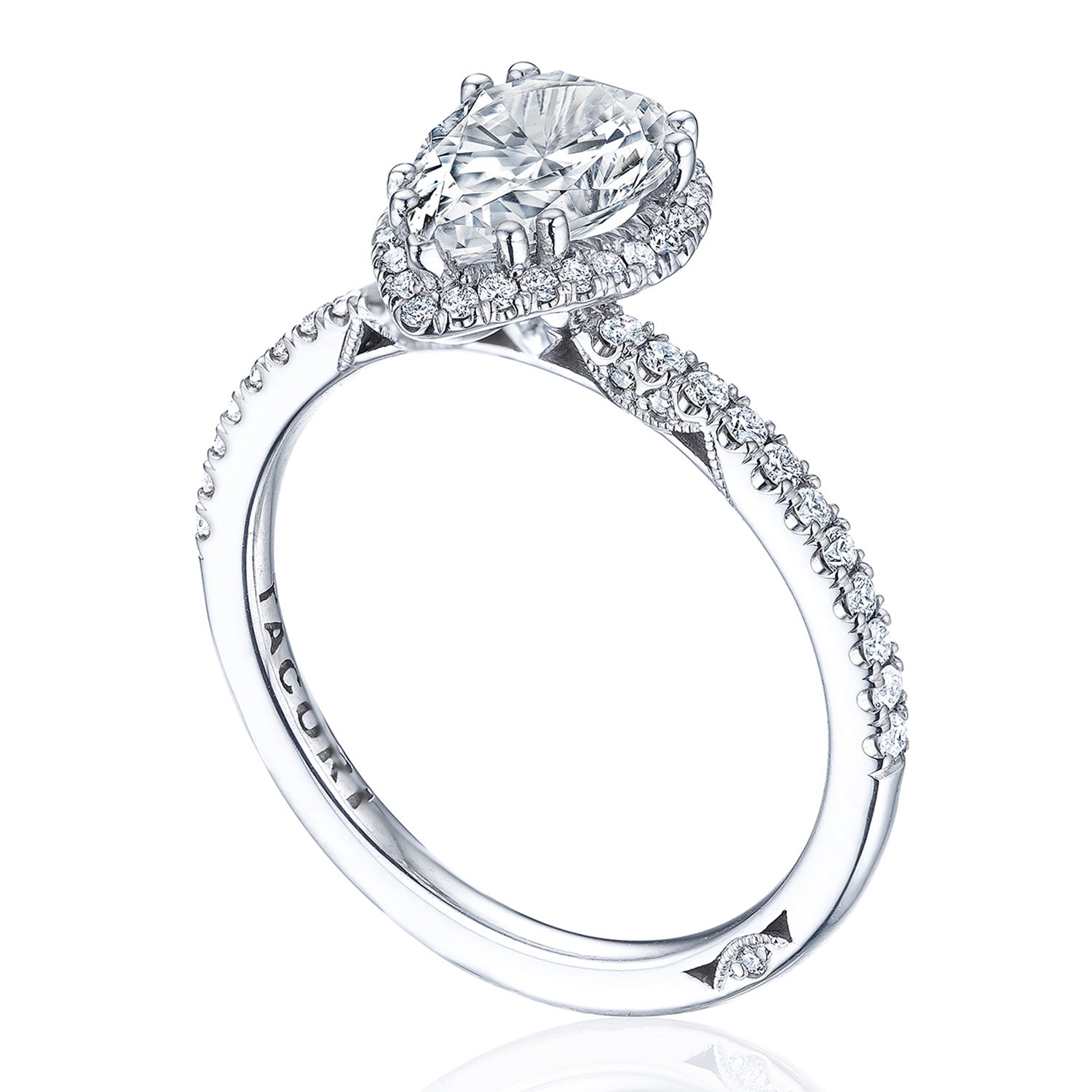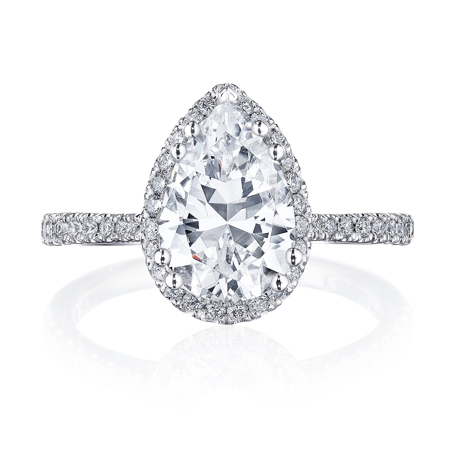 A thin, Simply Tacori Classic 360 foundation that delivers brilliant detail, crowned with a pear cut center and pear shaped bloom. Truly Tacori and totally lovely.