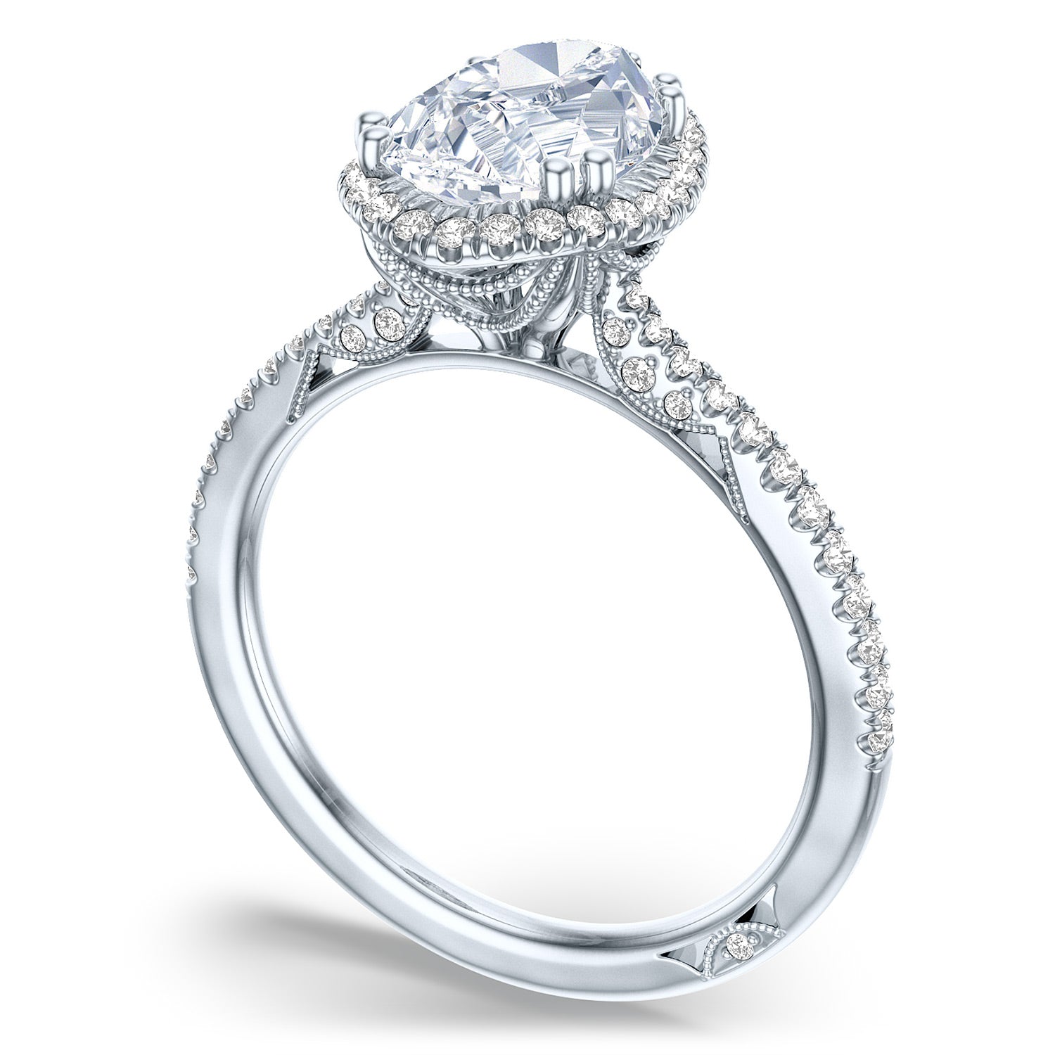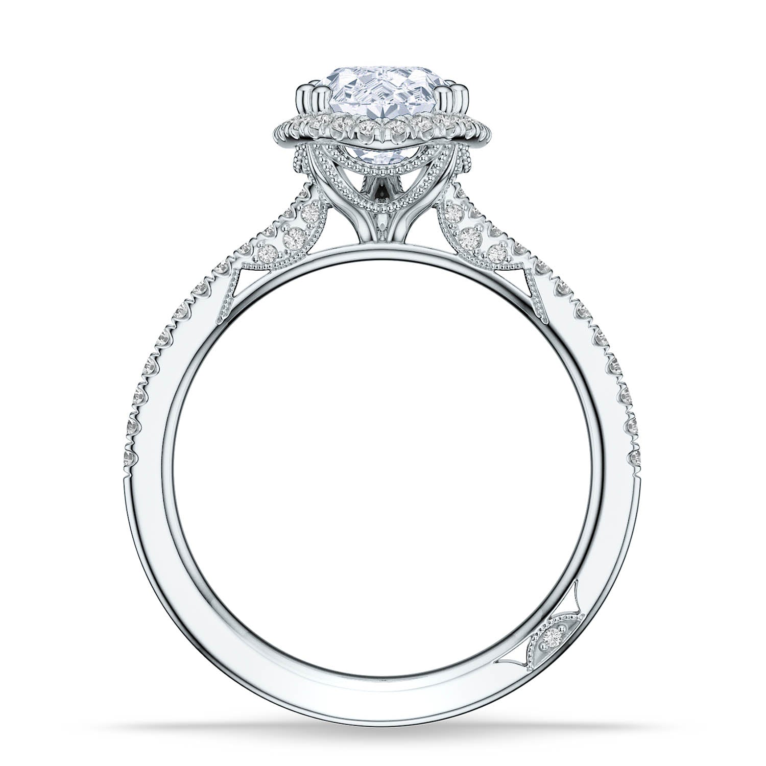 Inspired by the draping found in elegant bridal gowns.An elegant bloom sits atop a cathedral foundation with pavé ceiling and Simply Tacori inner face. Stunning milgrain details evoke couture bridal wear.