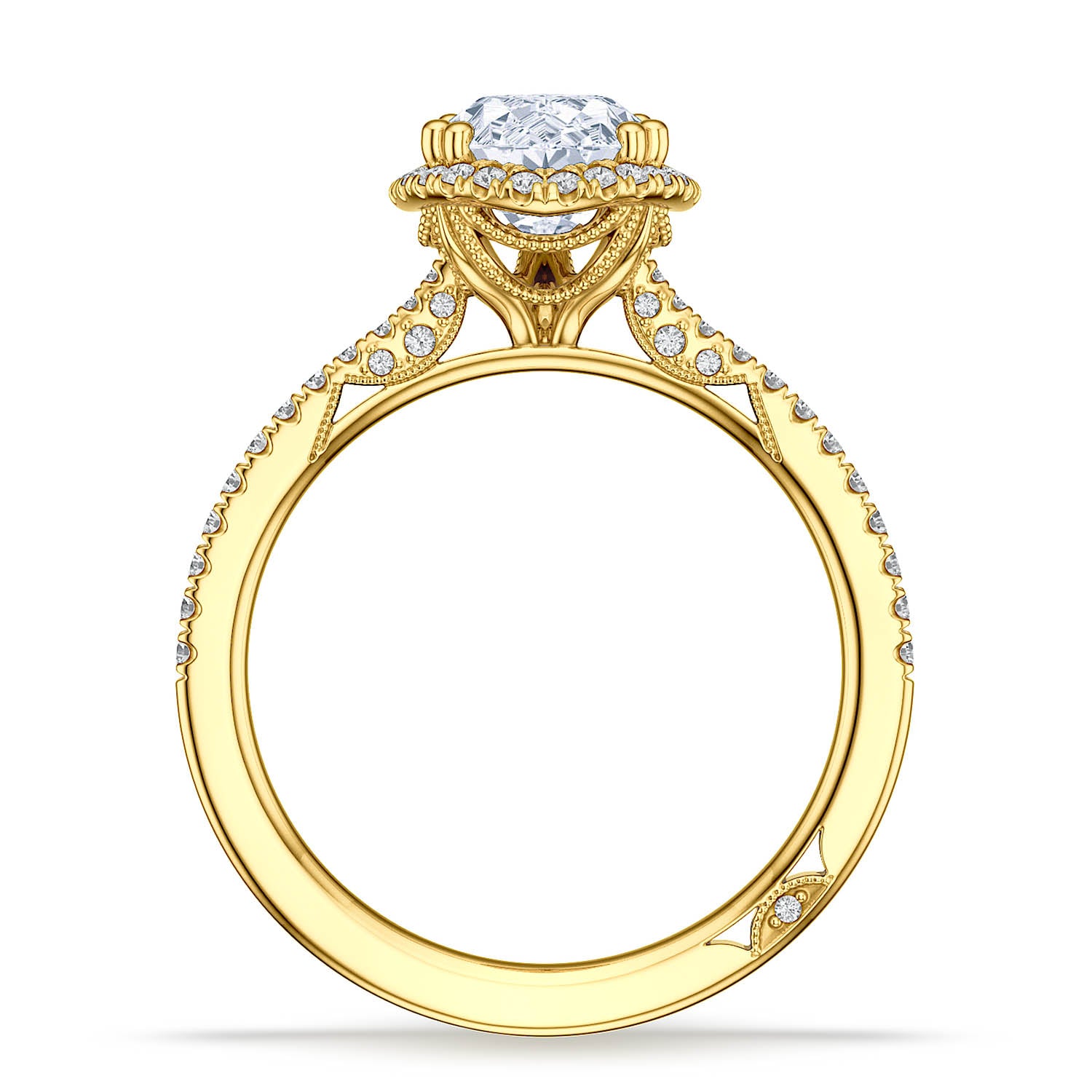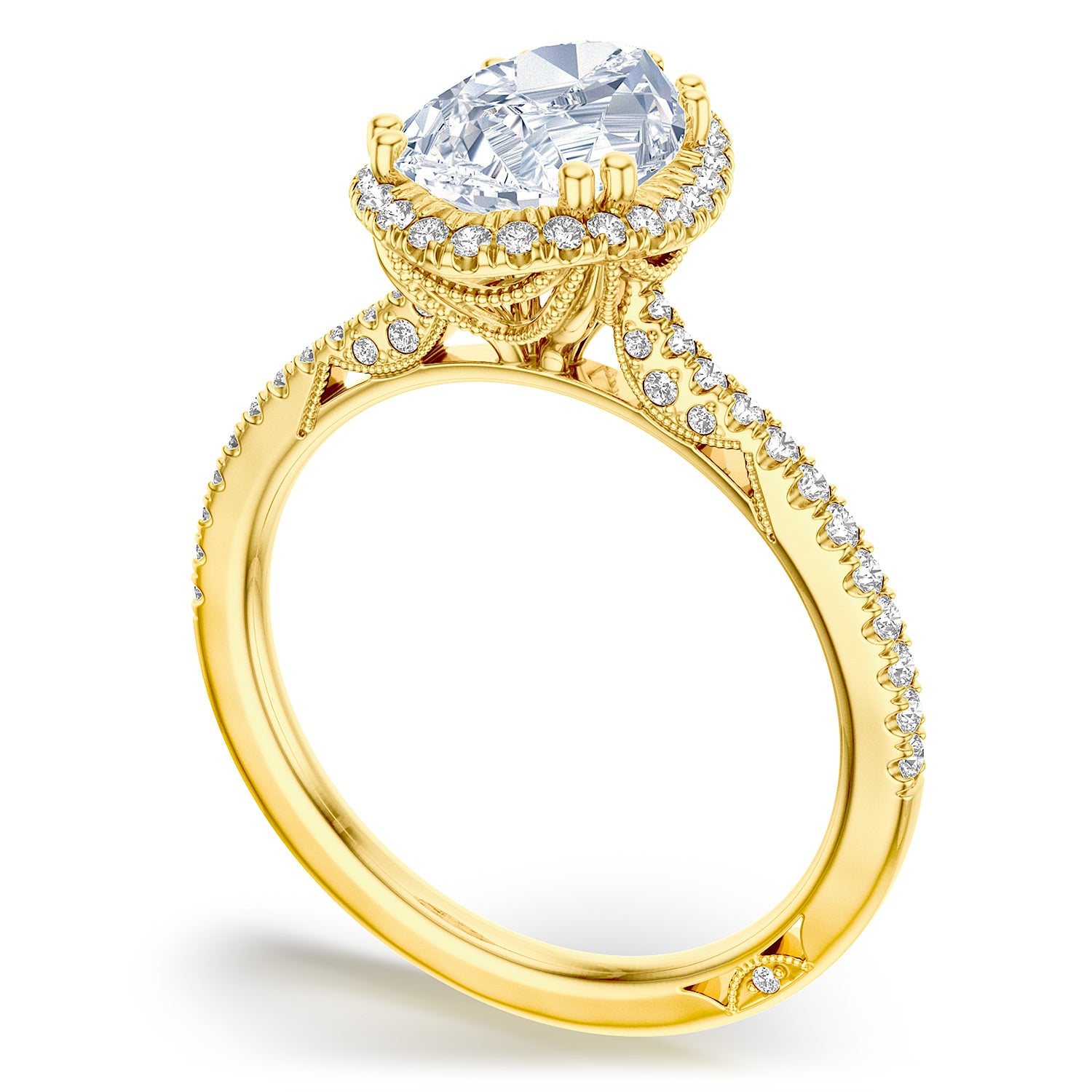 Inspired by the draping found in elegant bridal gowns.An elegant bloom sits atop a cathedral foundation with pavé ceiling and Simply Tacori inner face. Stunning milgrain details evoke couture bridal wear.