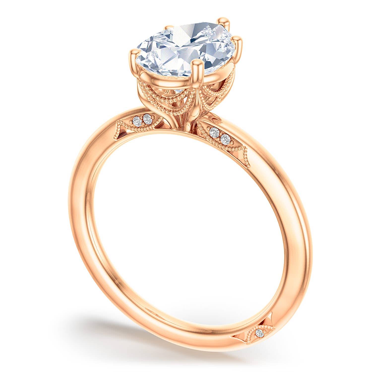 Inspired by the draping found in elegant bridal gowns.This Classic 360 solitaire features a high polish ceiling and a Simply Tacori inner face. Stunning milgrain details evoke couture bridal wear.