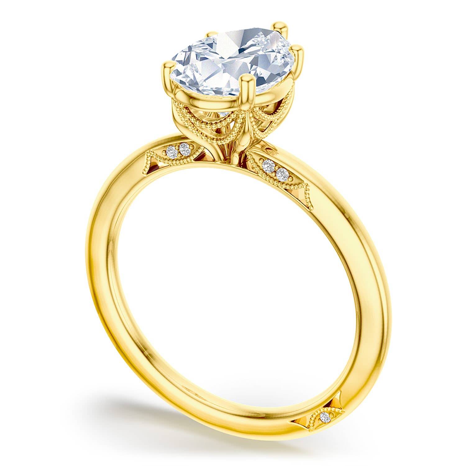 Inspired by the draping found in elegant bridal gowns.This Classic 360 solitaire features a high polish ceiling and a Simply Tacori inner face. Stunning milgrain details evoke couture bridal wear.