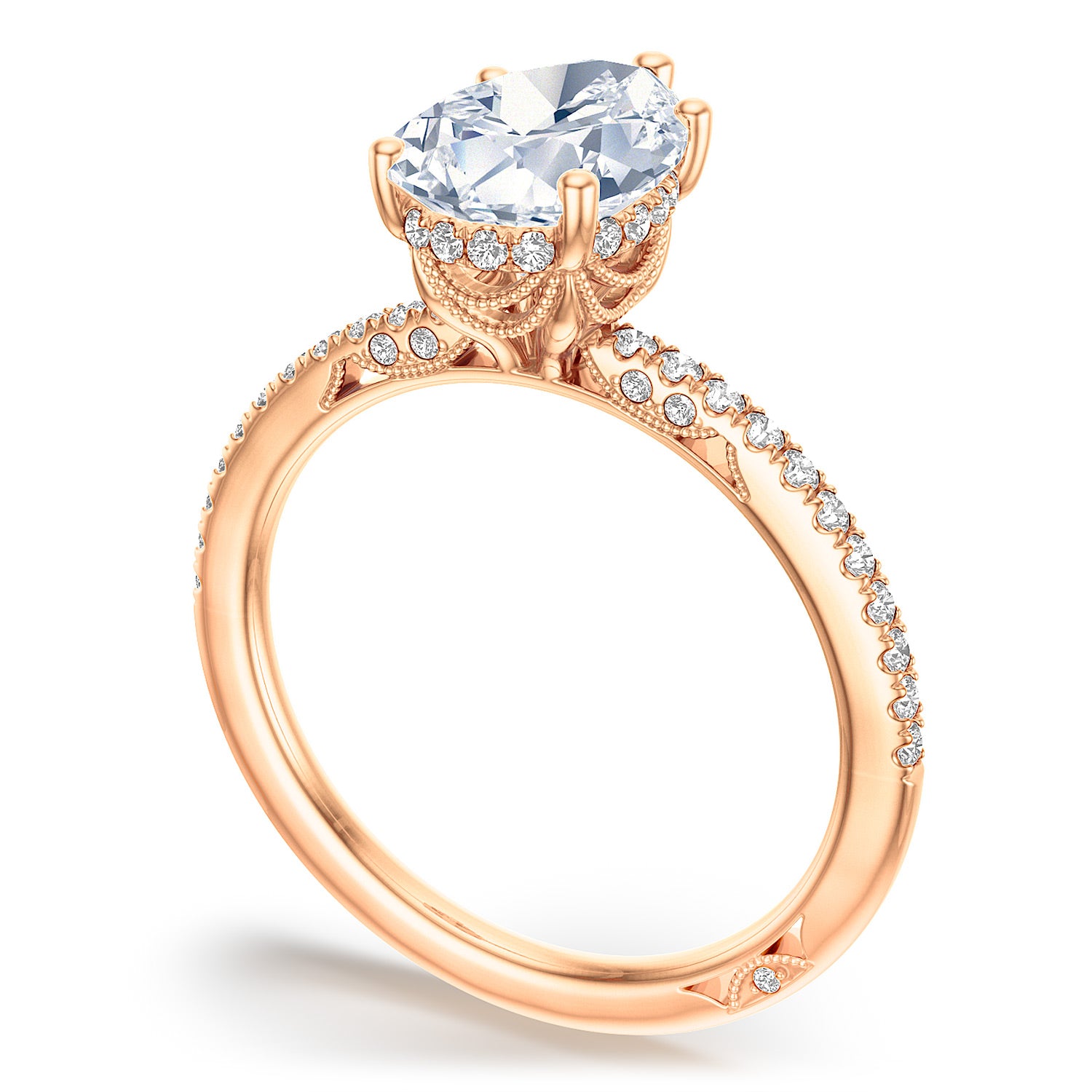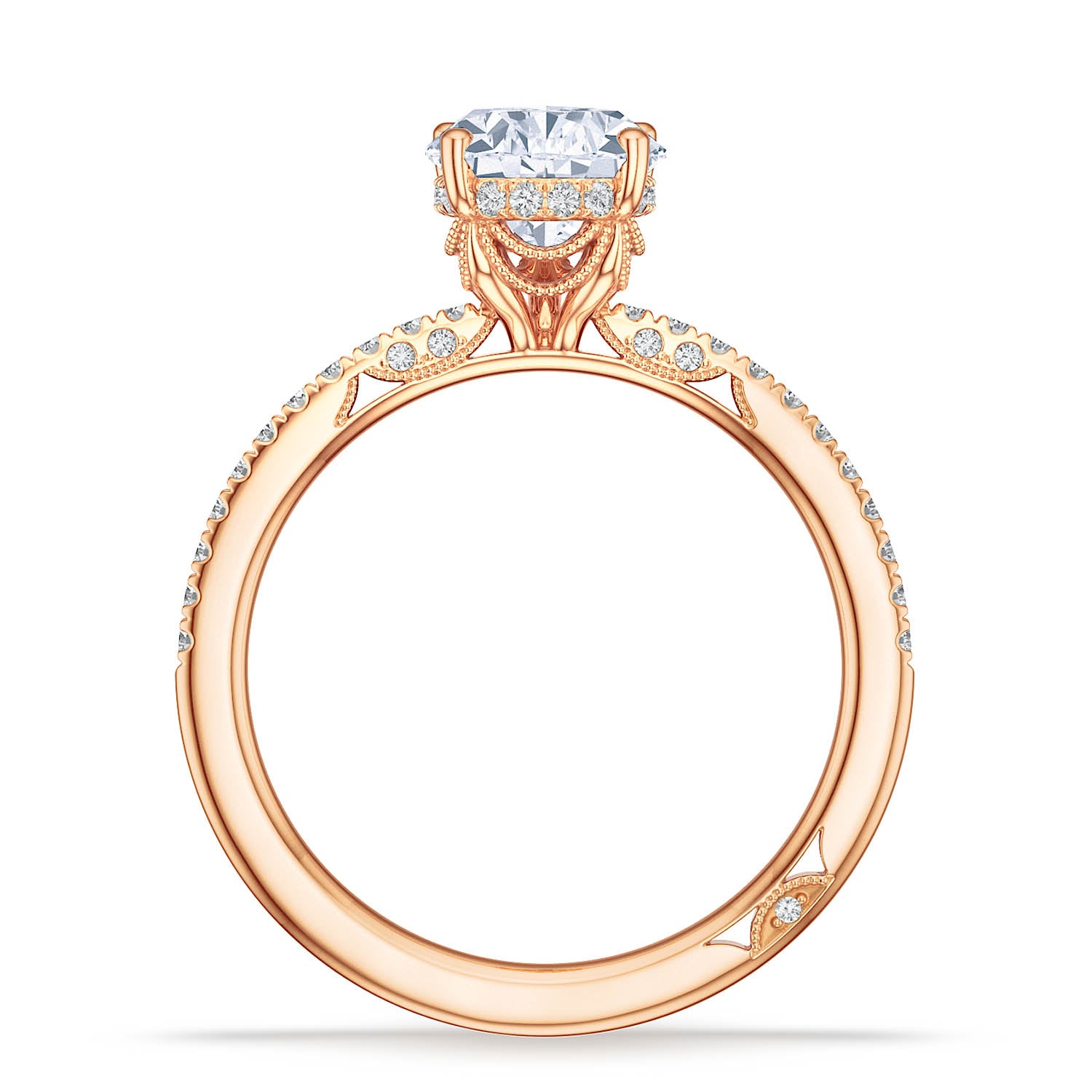 Inspired by the draping found in elegant bridal gowns.This Classic 360 solitaire features a pavé ceiling and a Simply Tacori inner face. Stunning milgrain details evoke couture bridal wear.