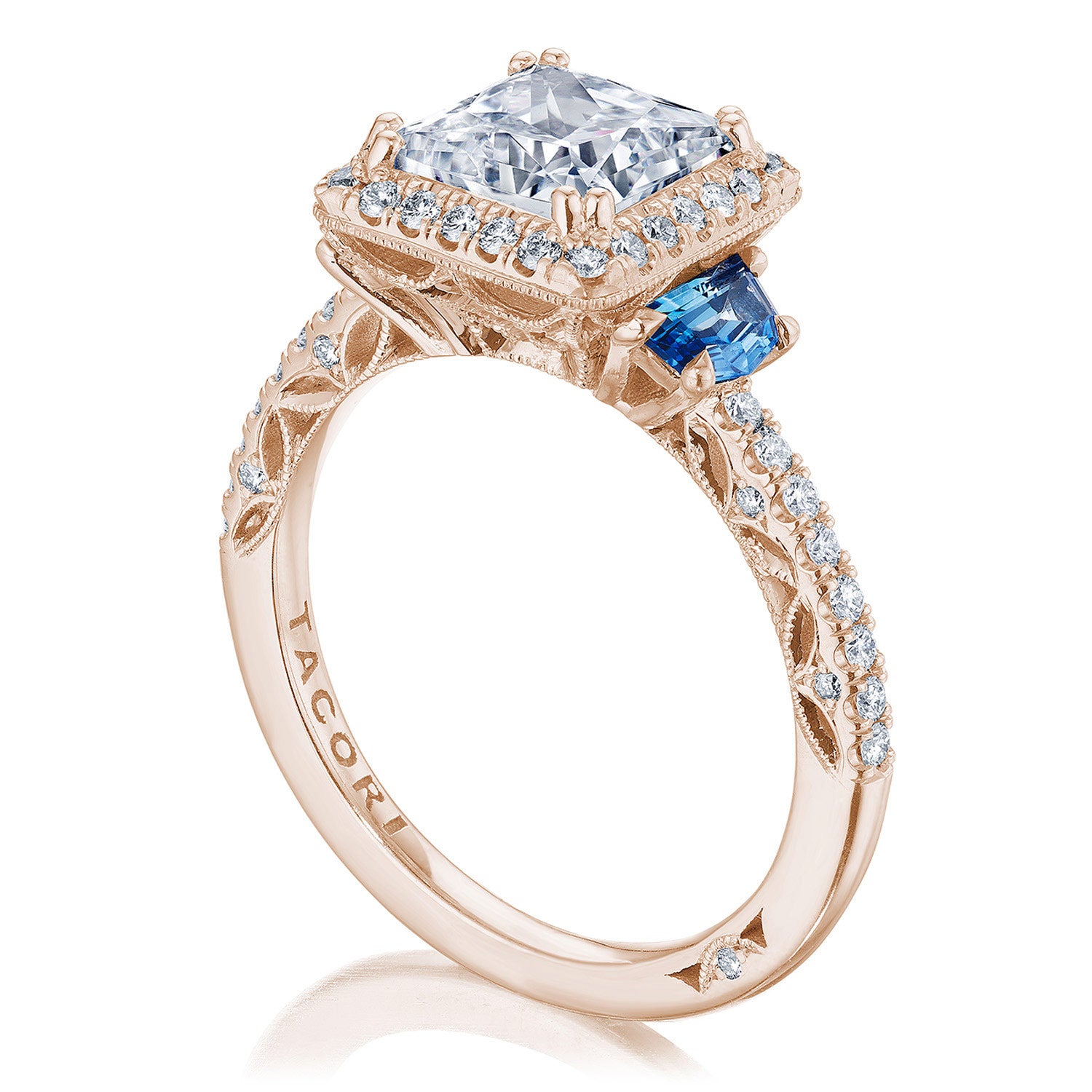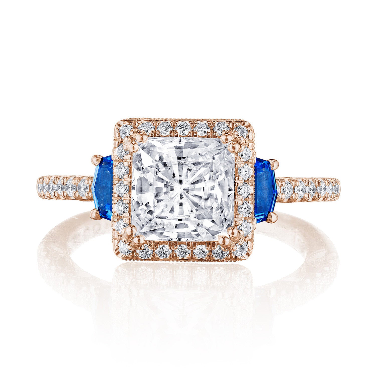 Princess 3-Stone Engagement Ring with Blue Sapphire