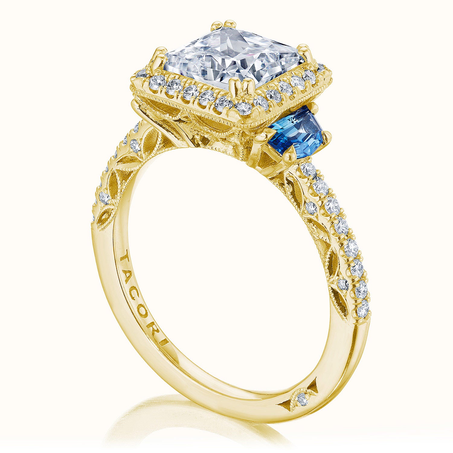 Princess 3-Stone Engagement Ring with Blue Sapphire
