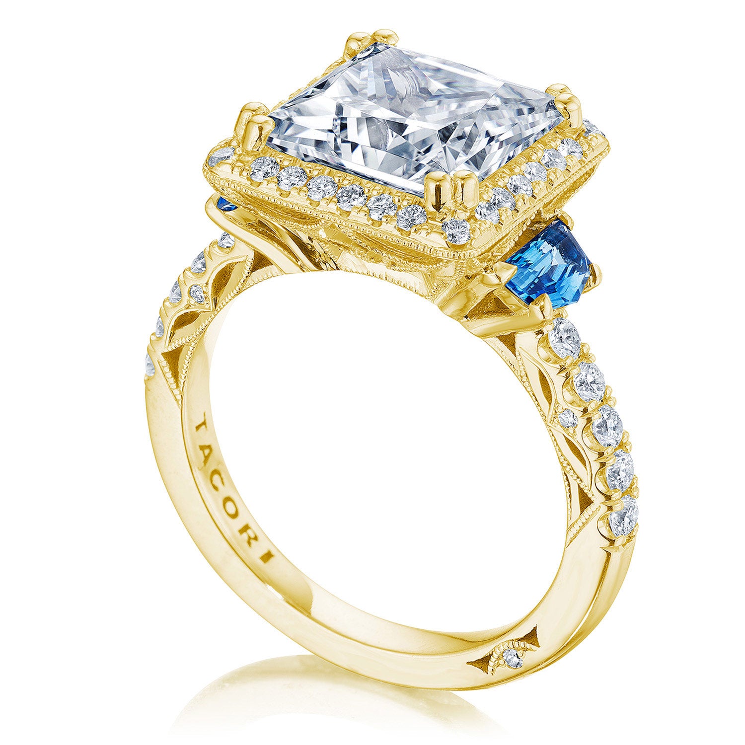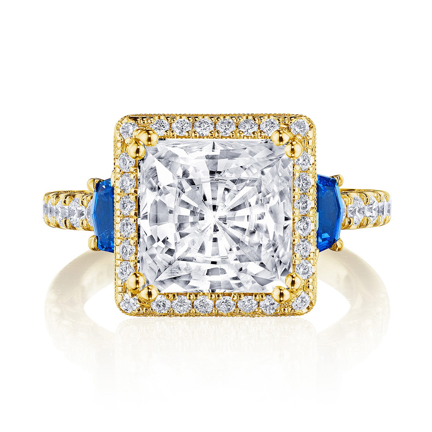 Princess 3-Stone Engagement Ring with Blue Sapphire