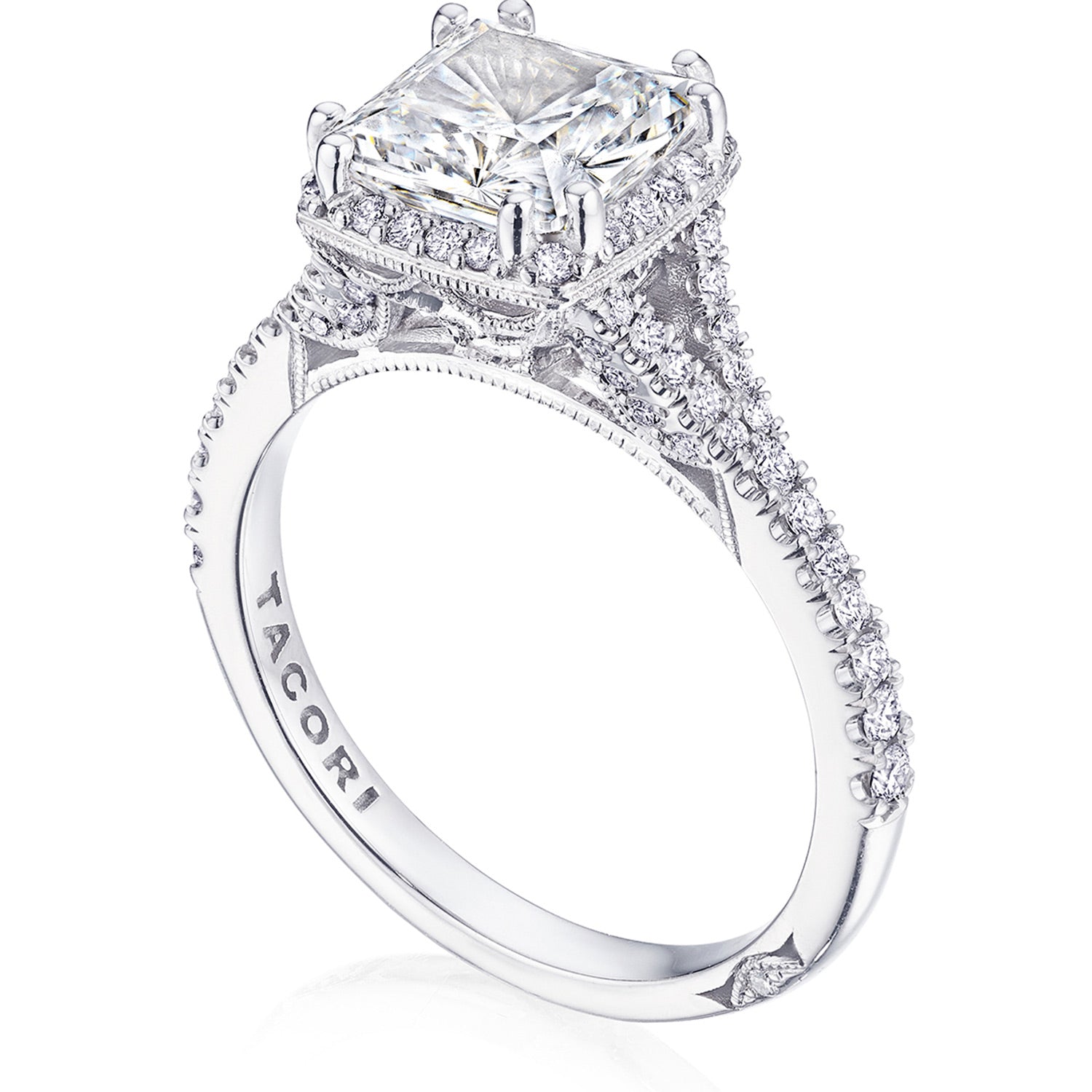 The prettiest new engagement ring from our iconic Dantela collection, the foundation of this ring reaches towards the princess cut center with open arms.