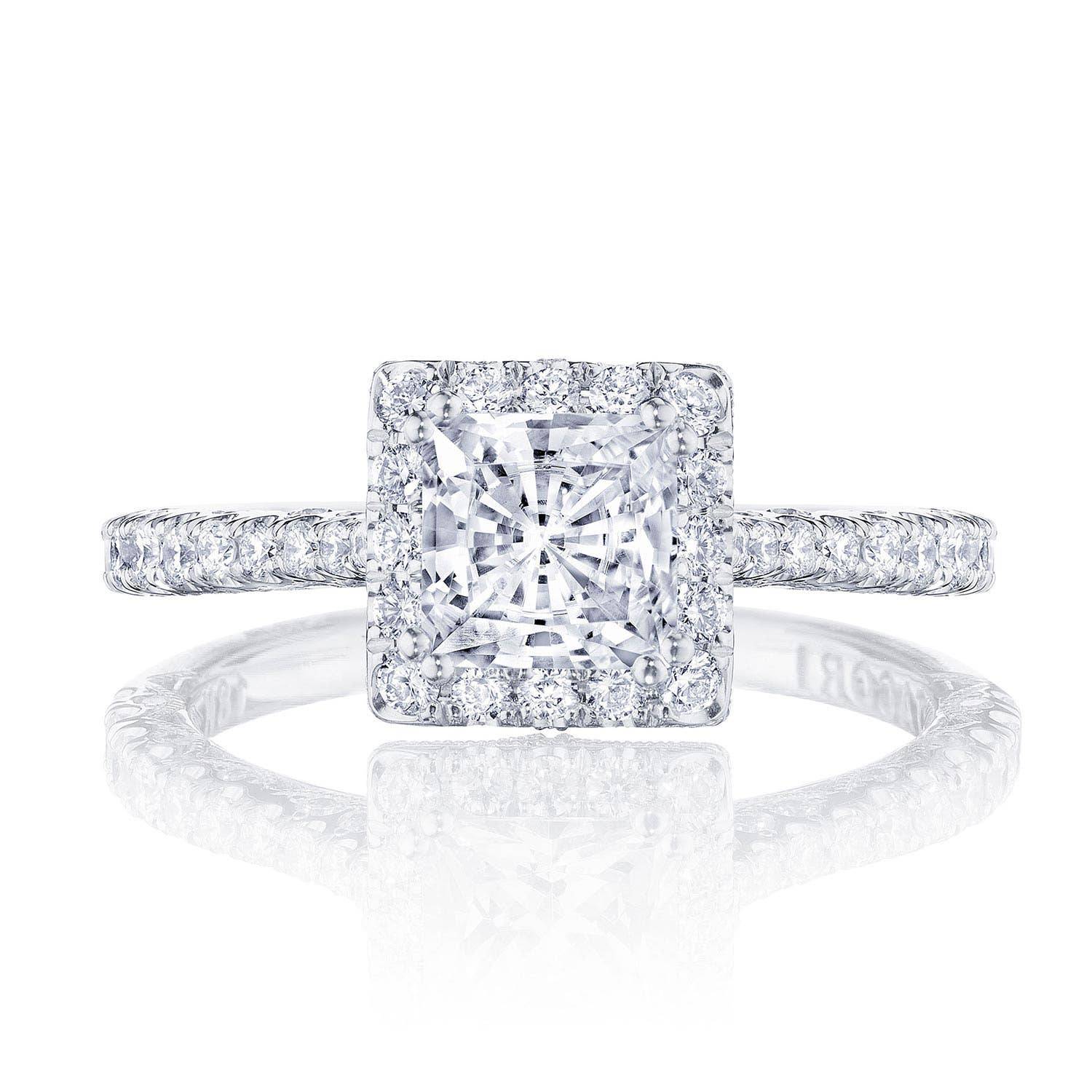 Heralding from the Petite Crescent Collection, this beautiful new style now "blooms" to spotlight your center diamond