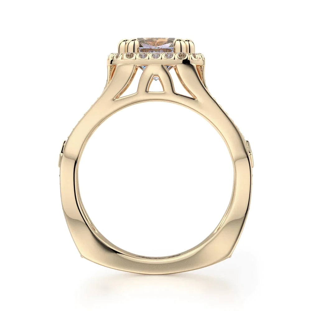 Immaculate Michael M engagement ring with cushion-shaped center diamond setting. Adorned with over 0.56 carats of round cut side diamonds. Crafted in exquisite 18-karat white gold for a timeless and elegant look.