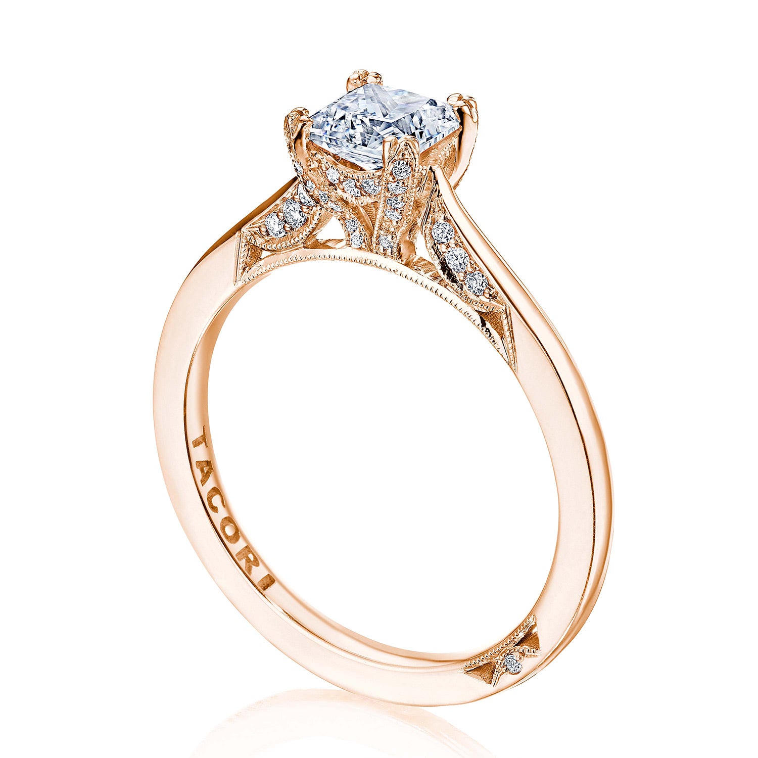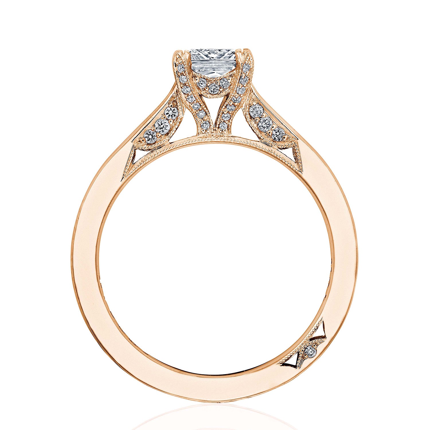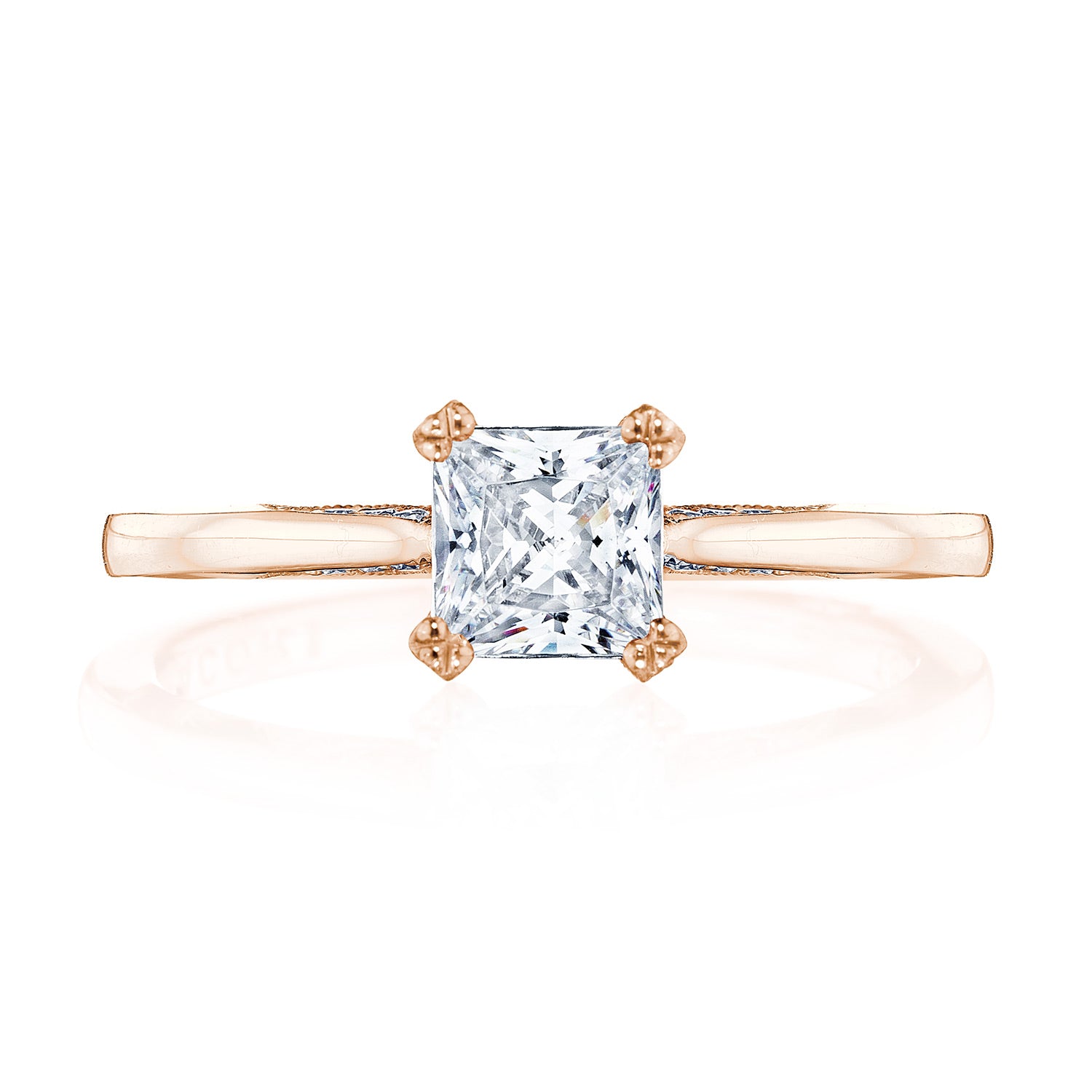 Delicate details and a dainty Cathedral foundation. This Simply Tacori solitaire features an effortlessly modern, hi-polish ceiling and princess cut center.