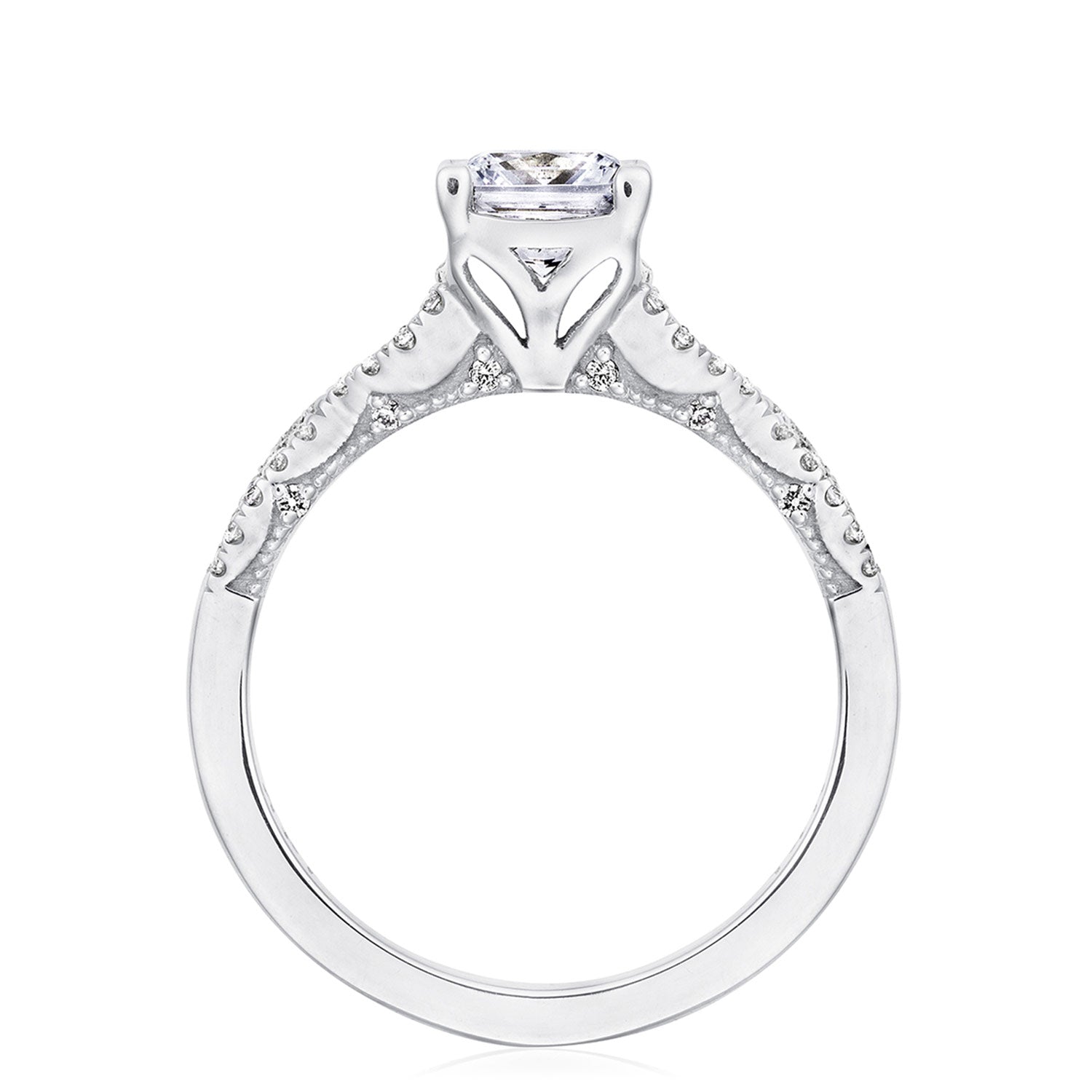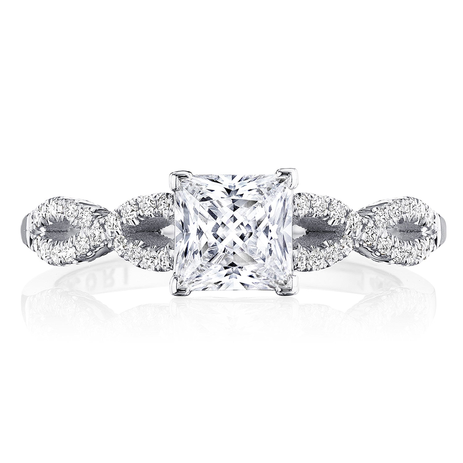 Put your own twist on the classic diamond engagement ring. Watch your princess cut center come to life in this ribbon design engagement ring, featuring the Coastal Crescent inner face with pinpoint diamond details.