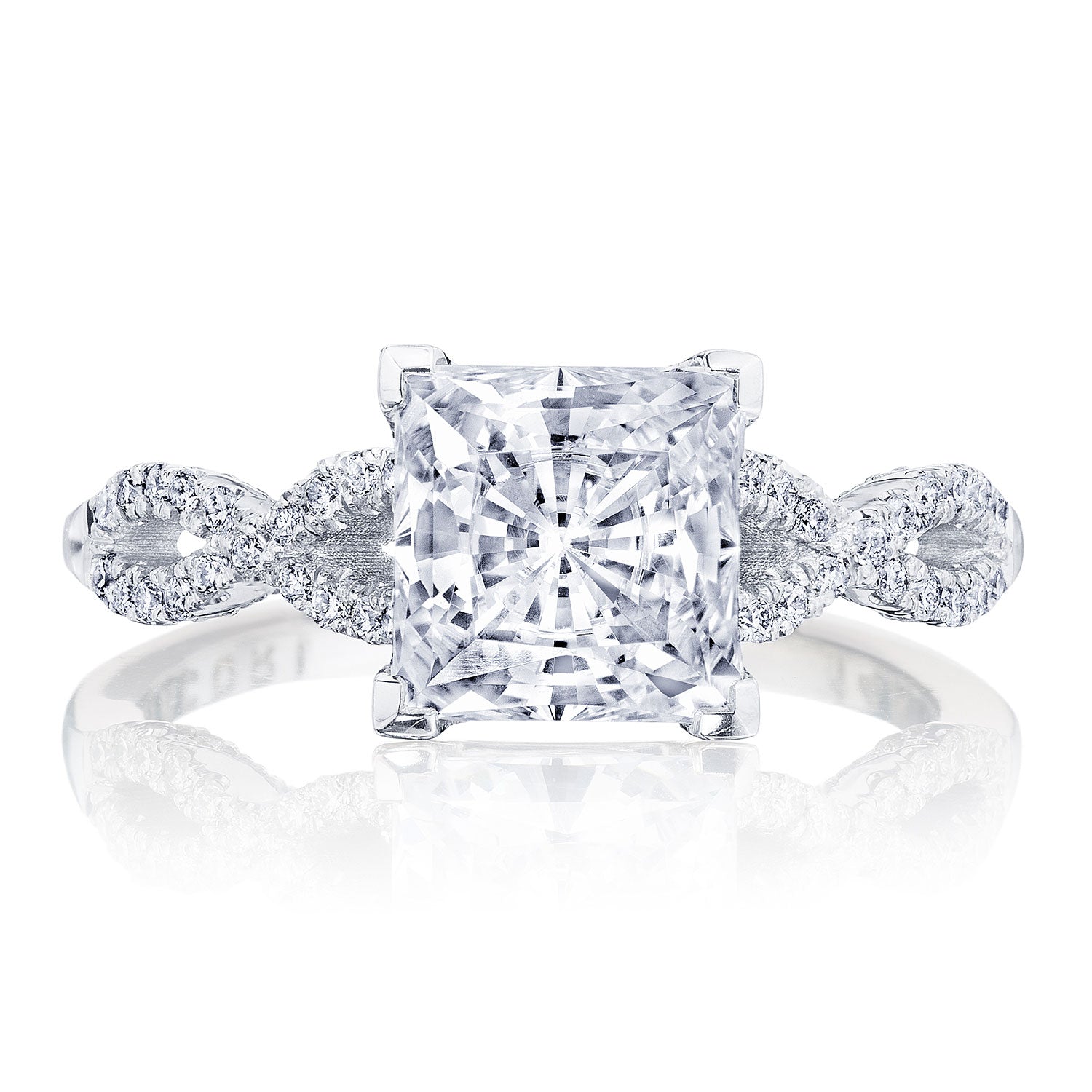 Put your own twist on the classic diamond engagement ring. Watch your princess cut center come to life in this ribbon design engagement ring, featuring the Coastal Crescent inner face with pinpoint diamond details.