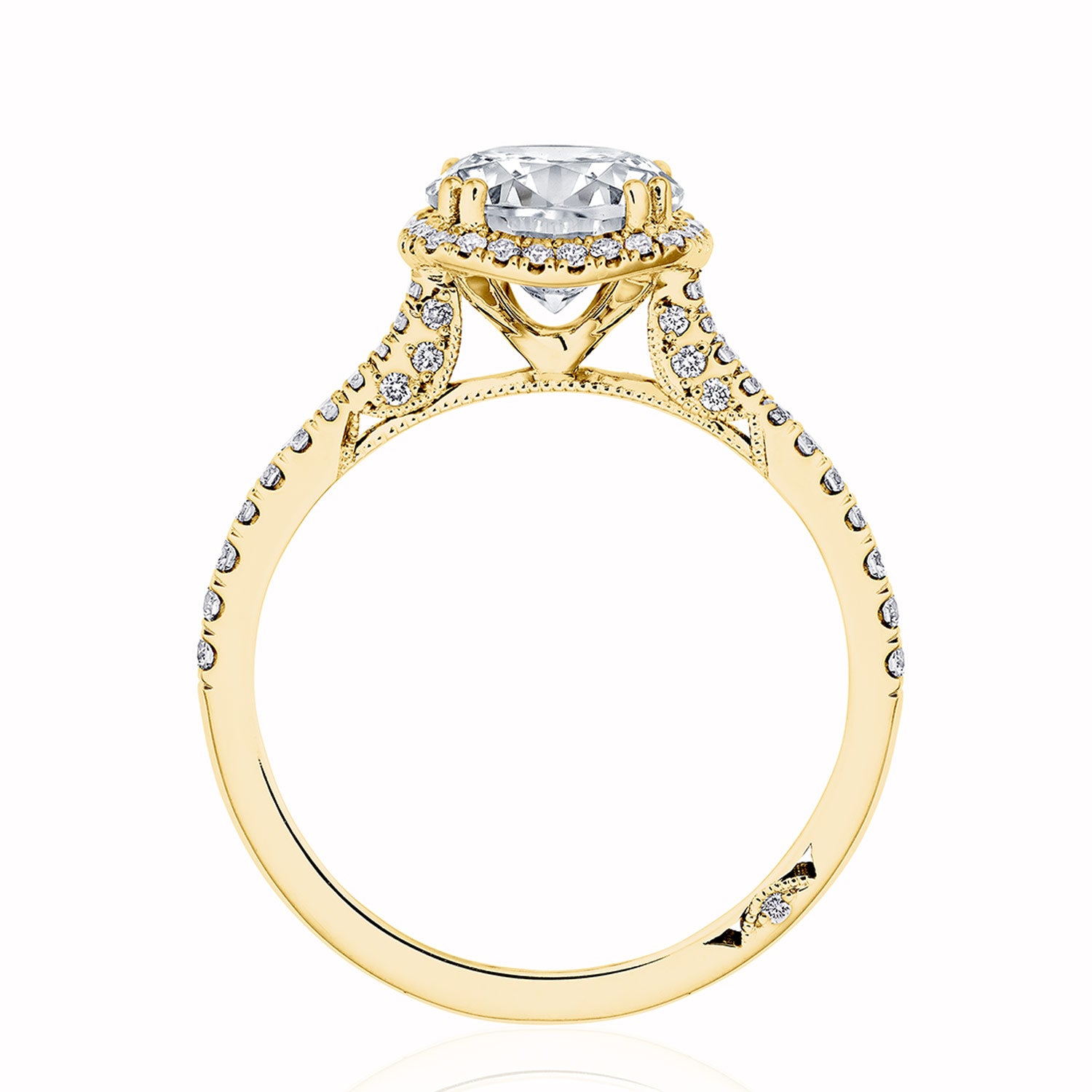 A thin, Simply Tacori Cathedral foundation that delivers brilliant detail, crowned with a princess cut center and cushion shaped bloom. Truly Tacori and totally lovely.