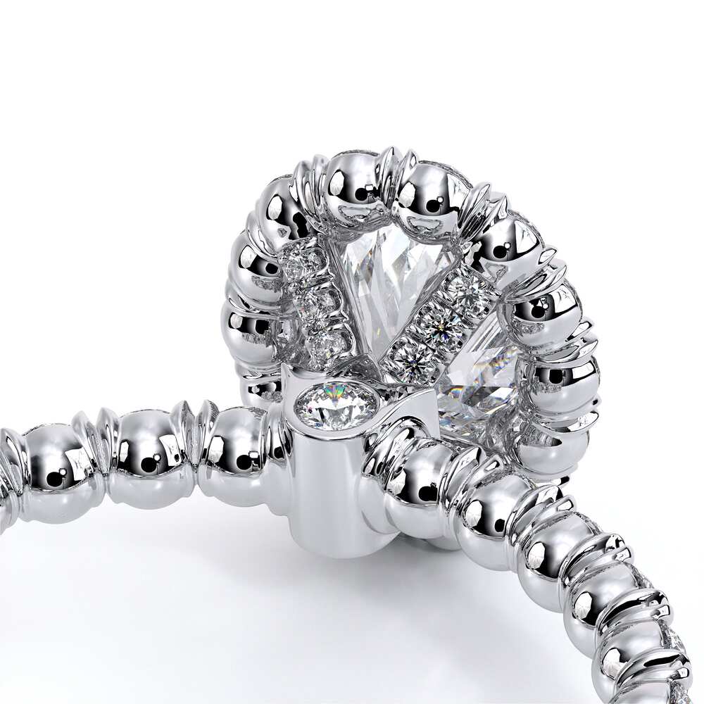 Renaissance-954OV1.8 is beautifully accented with pave set diamond prongs leading to from the shank to the halo. This oval halo engagement ring sparkles from every angle.
