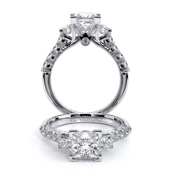 Elevate your love story with the Verragio Women's Engagement Ring from the Renaissance Collection. The exquisite Renaissance-956P22, with its classic three stone design and sweeping profile details, symbolizes your past, present, and future in timeless elegance. Starting at $4,000.00 USD.