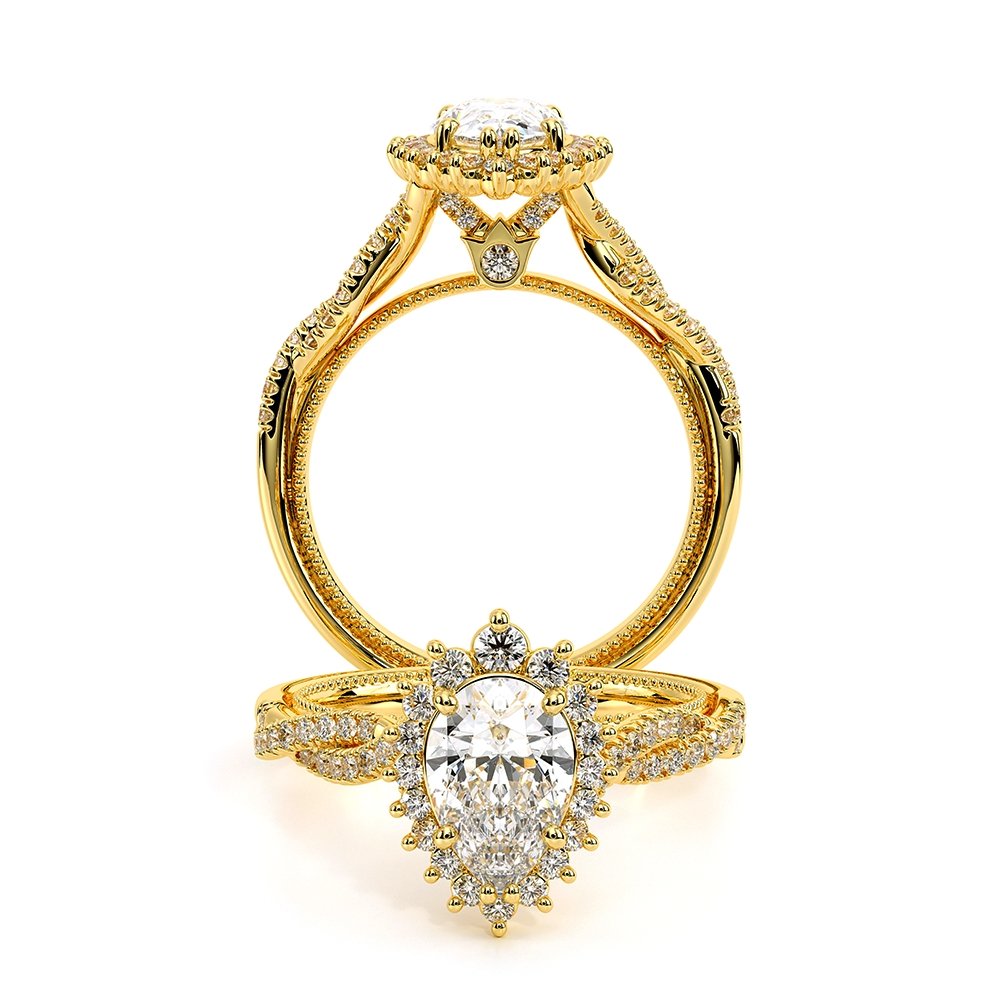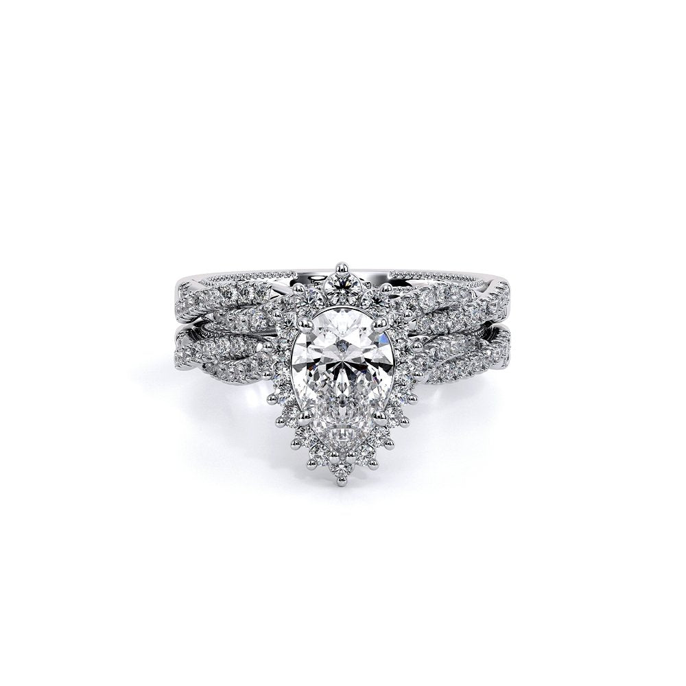 Experience the epitome of sophistication with the Verragio Renaissance-987PS Pear shape engagement ring. Adorned with handcrafted Crown halo and exquisite detailing, this timeless piece is a symbol of elegance. Complete the look with the matching Renaissance-987W wedding band for a classic bridal set.