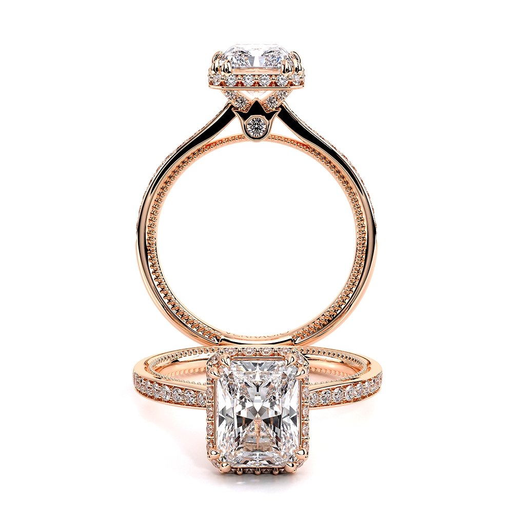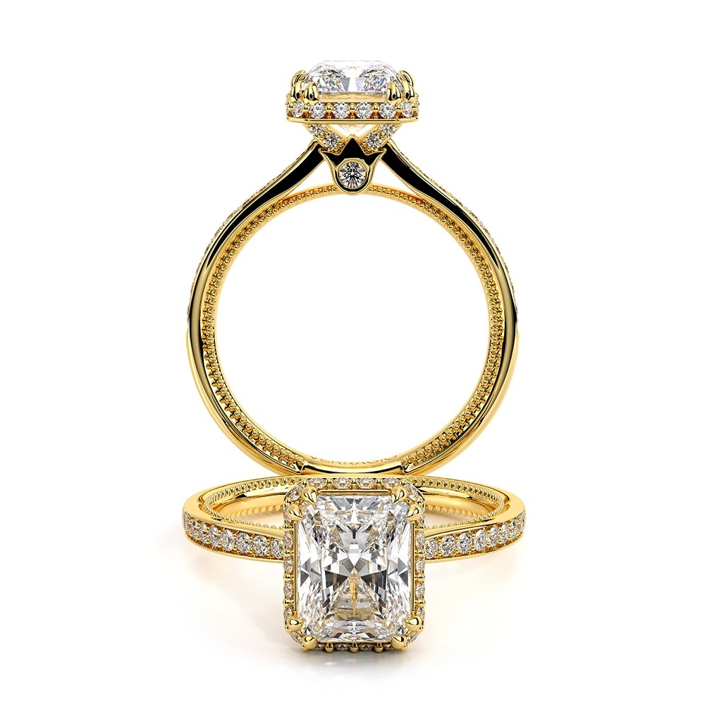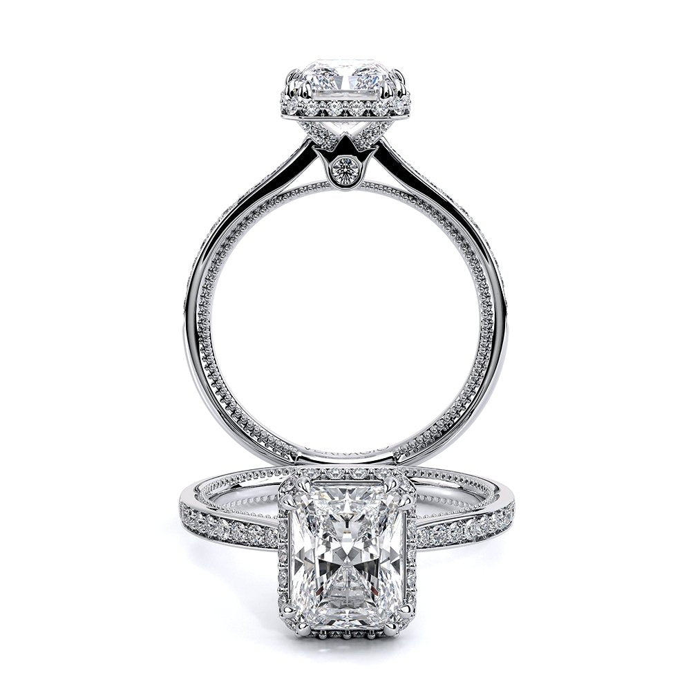 Elevate your love story with the Verragio Renaissance Women's Engagement Ring, featuring a stunning Emerald-shaped stone in a shared prong Stardust halo. Crafted with a round brilliant cut diamond band and signature beading, this timeless piece exudes sophistication. Starting at $2,500.00 USD.
