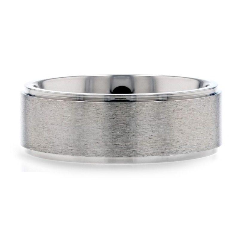 RHINOX Brushed Raised Center Men's Titanium Wedding Ring with Polished Step Edges - 8mm