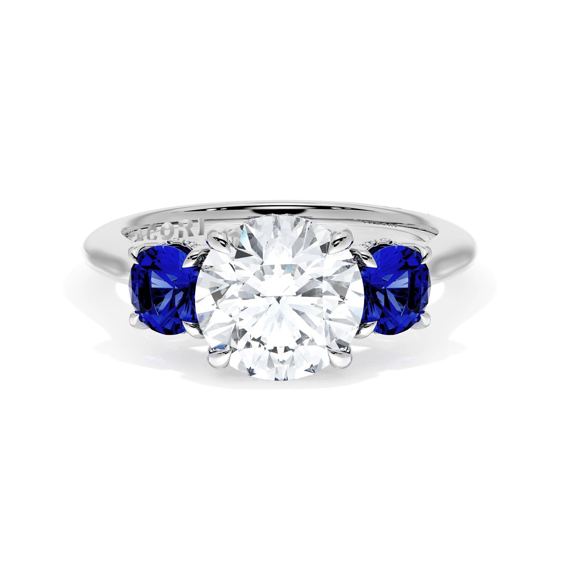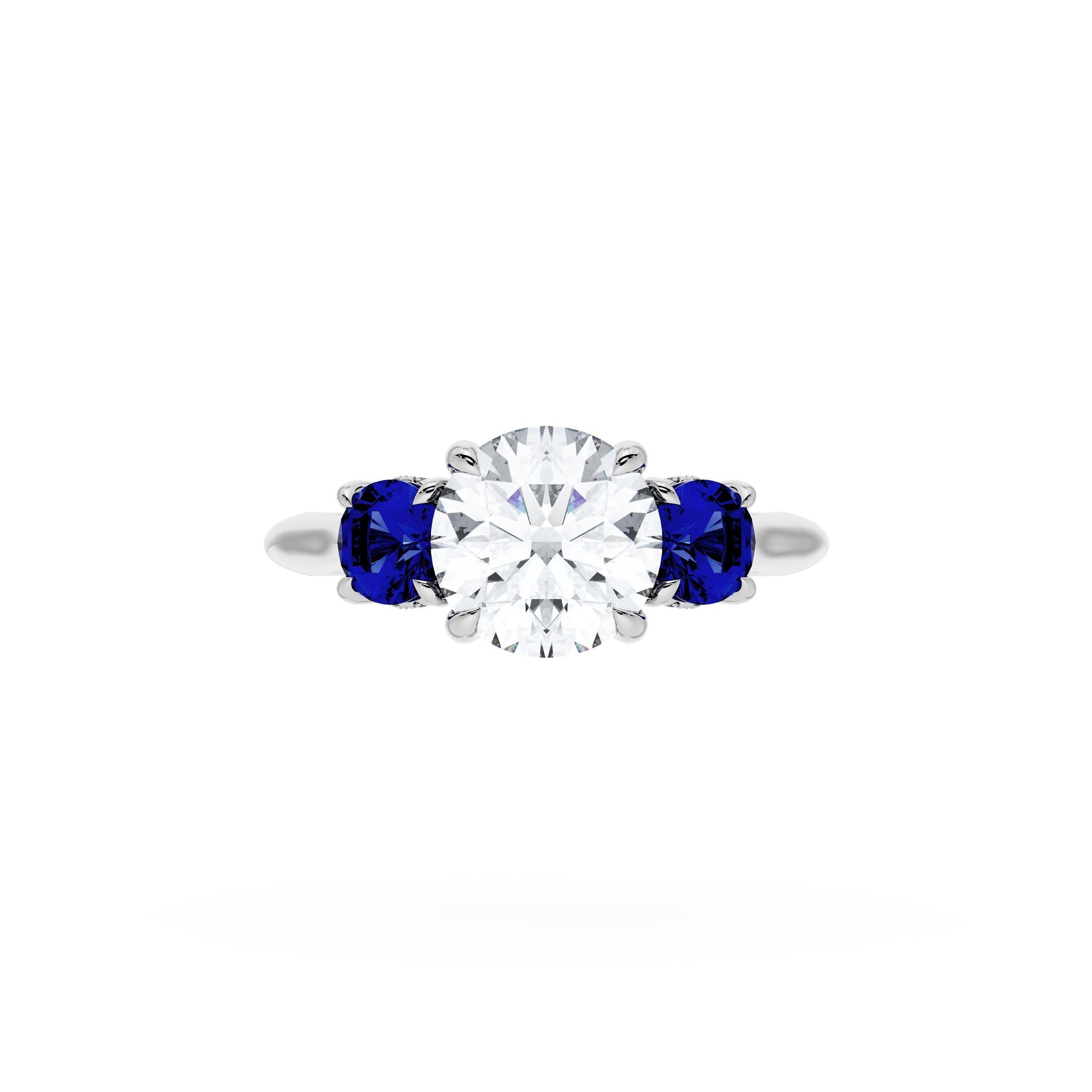 Round 3-Stone Engagement Ring in Blue Sapphire