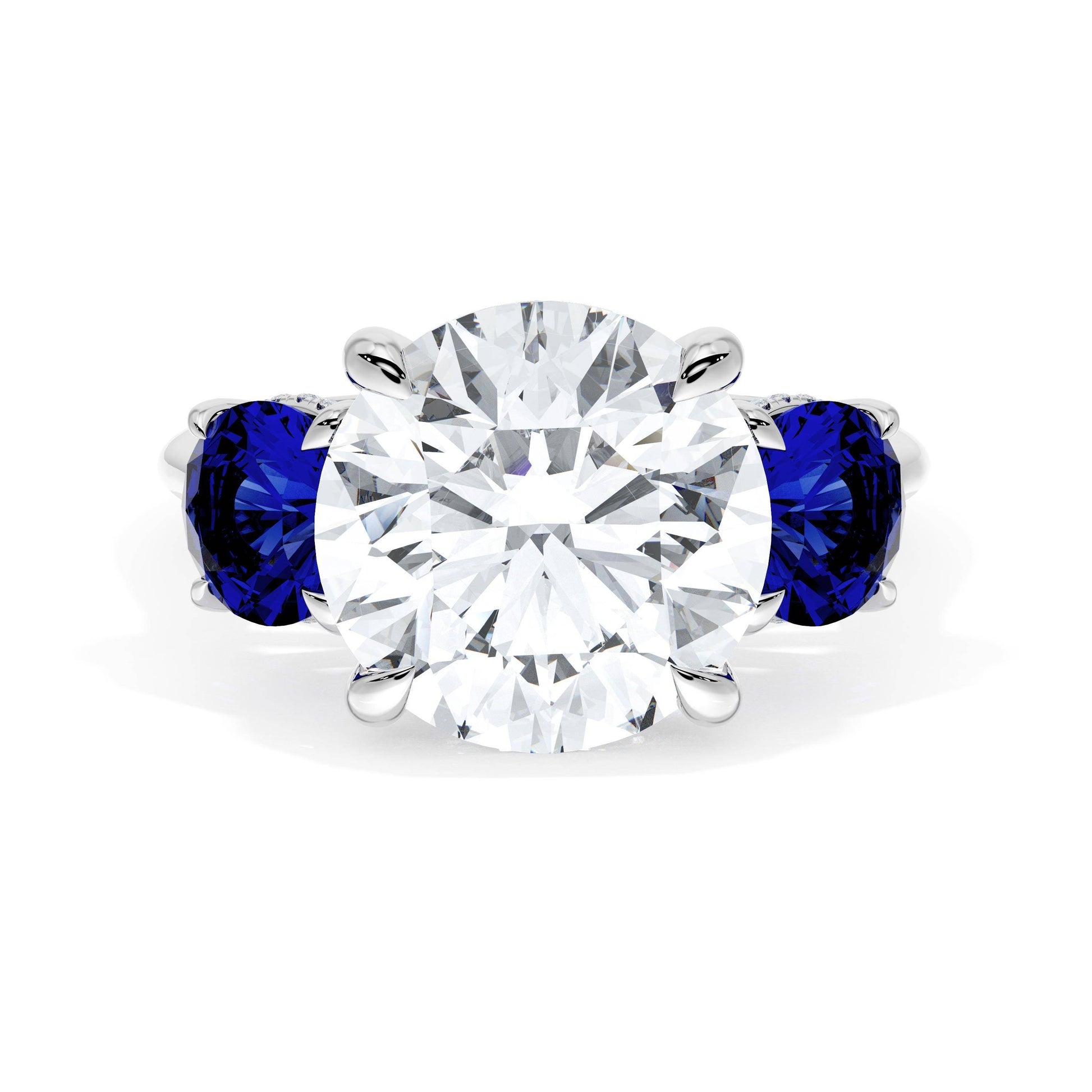 Round 3-Stone Engagement Ring in Blue Sapphire