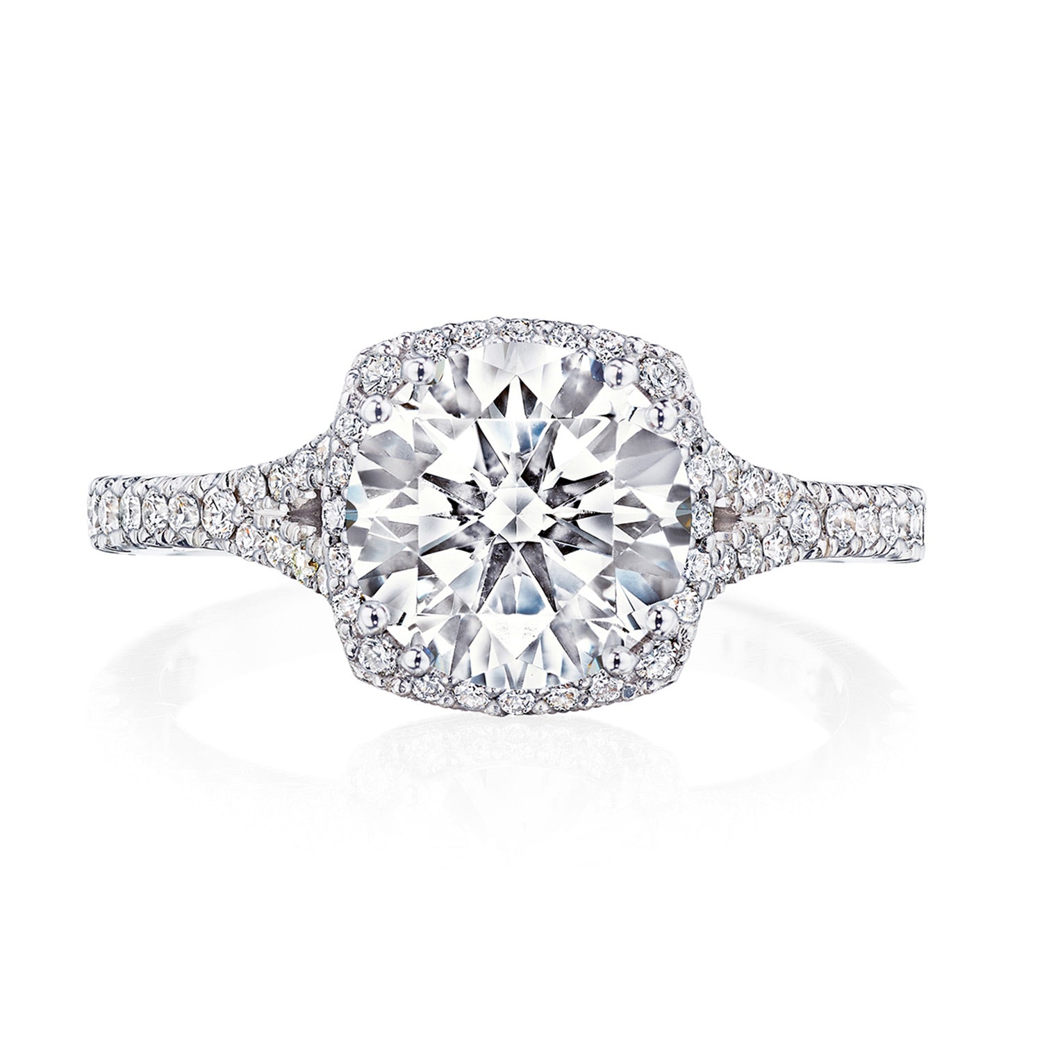 The prettiest new engagement ring from our iconic Dantela collection, the foundation of this ring reaches towards the cushion bloom with open arms.