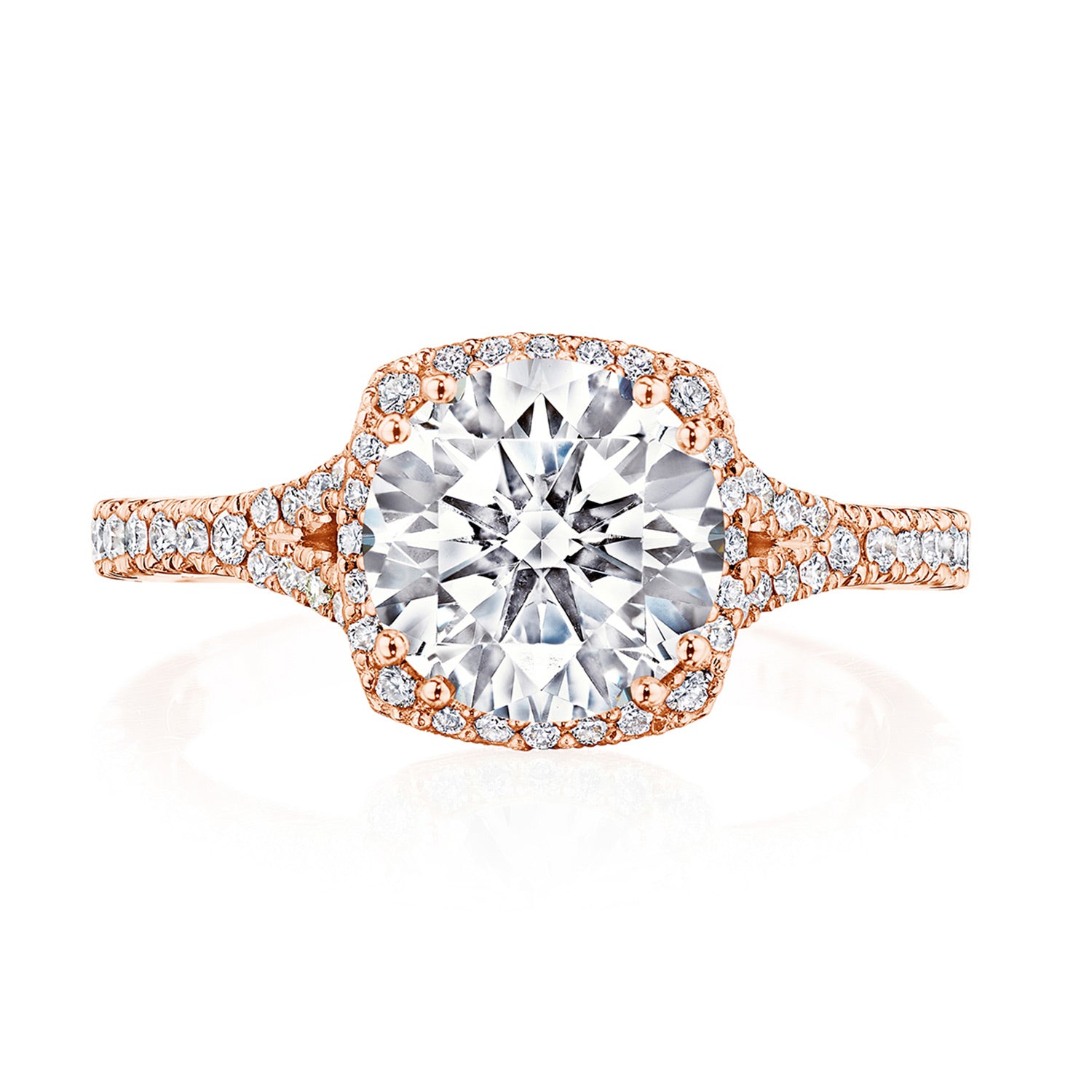 The prettiest new engagement ring from our iconic Dantela collection, the foundation of this ring reaches towards the cushion bloom with open arms.