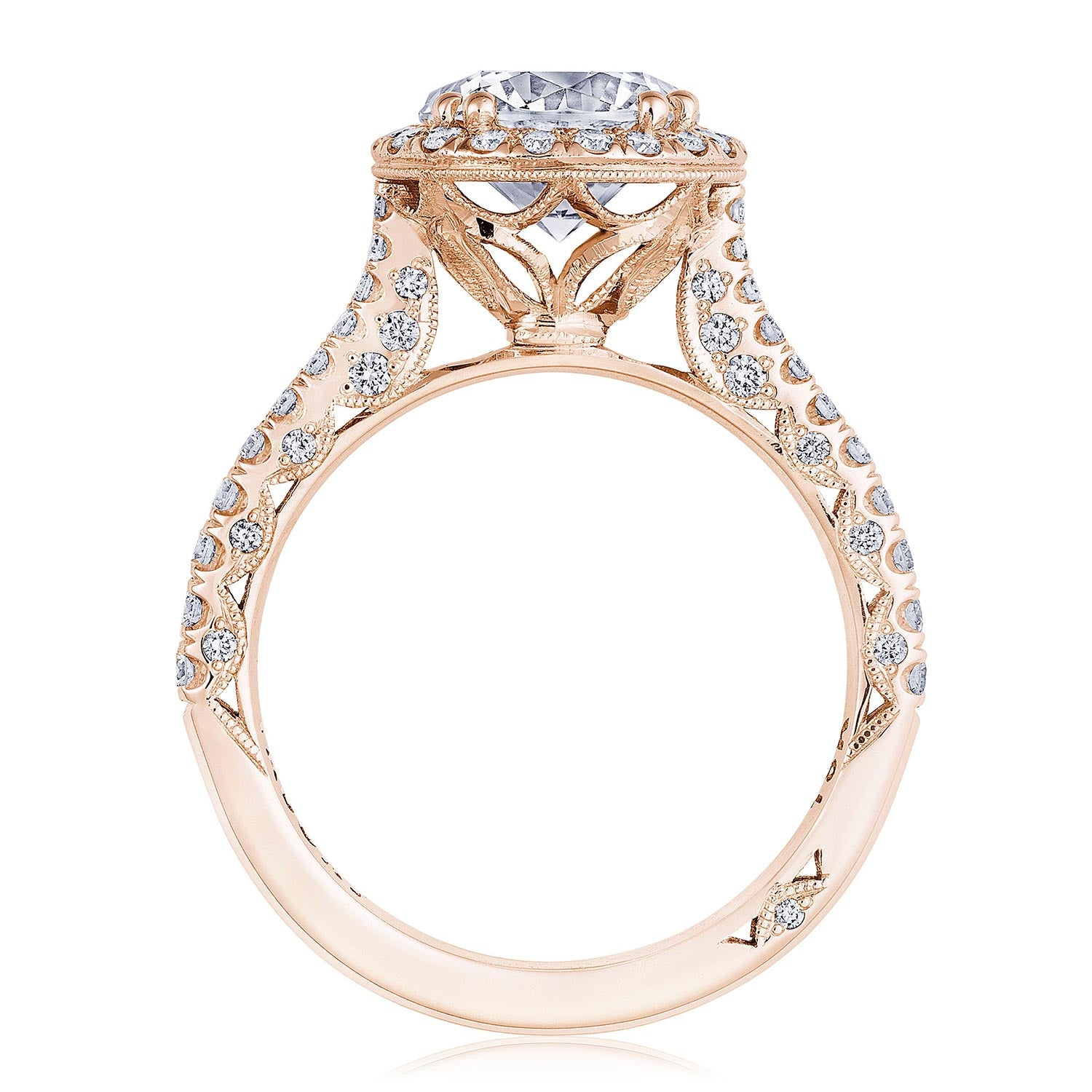 A diamond-intense Petite Crescent foundation with a lace-like Dantela crown and round bloom. Graduating diamonds on the band taper towards the center, adding the perfect touch of classic elegance.