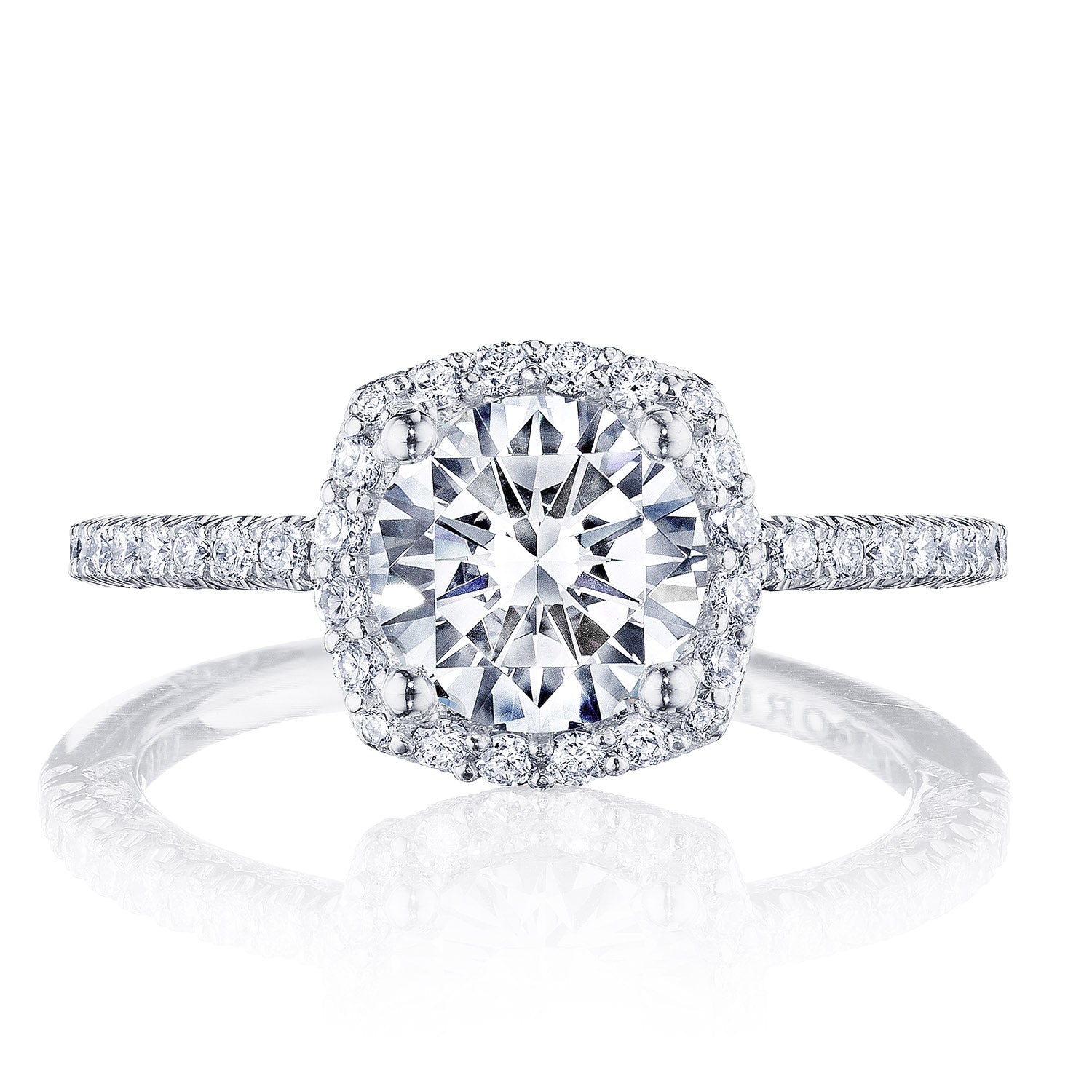 Heralding from the Petite Crescent Collection, this beautiful new style now "blooms" to spotlight your center diamond