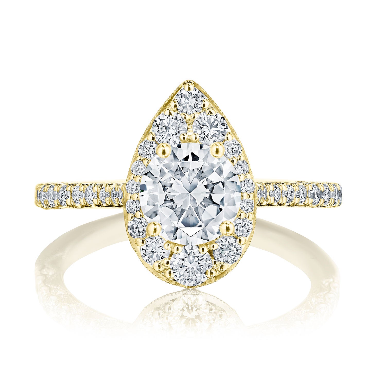 Never basic, always extra - bloom your round center diamond into a pear shaped diamond engagement ring. If you are a lover of the classic round diamond cut but want to give your engagement ring a little bit more bling and edge - this is it!