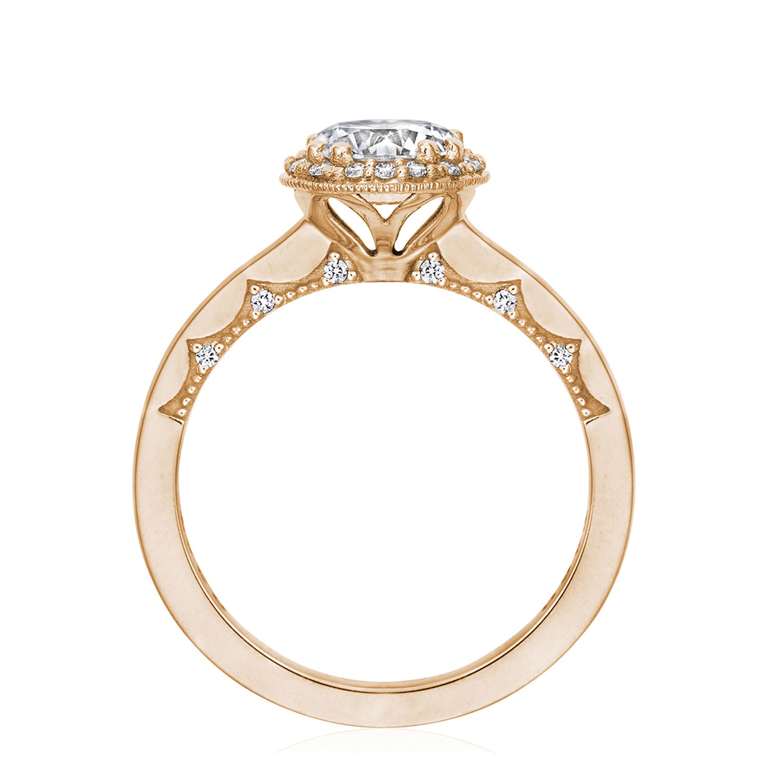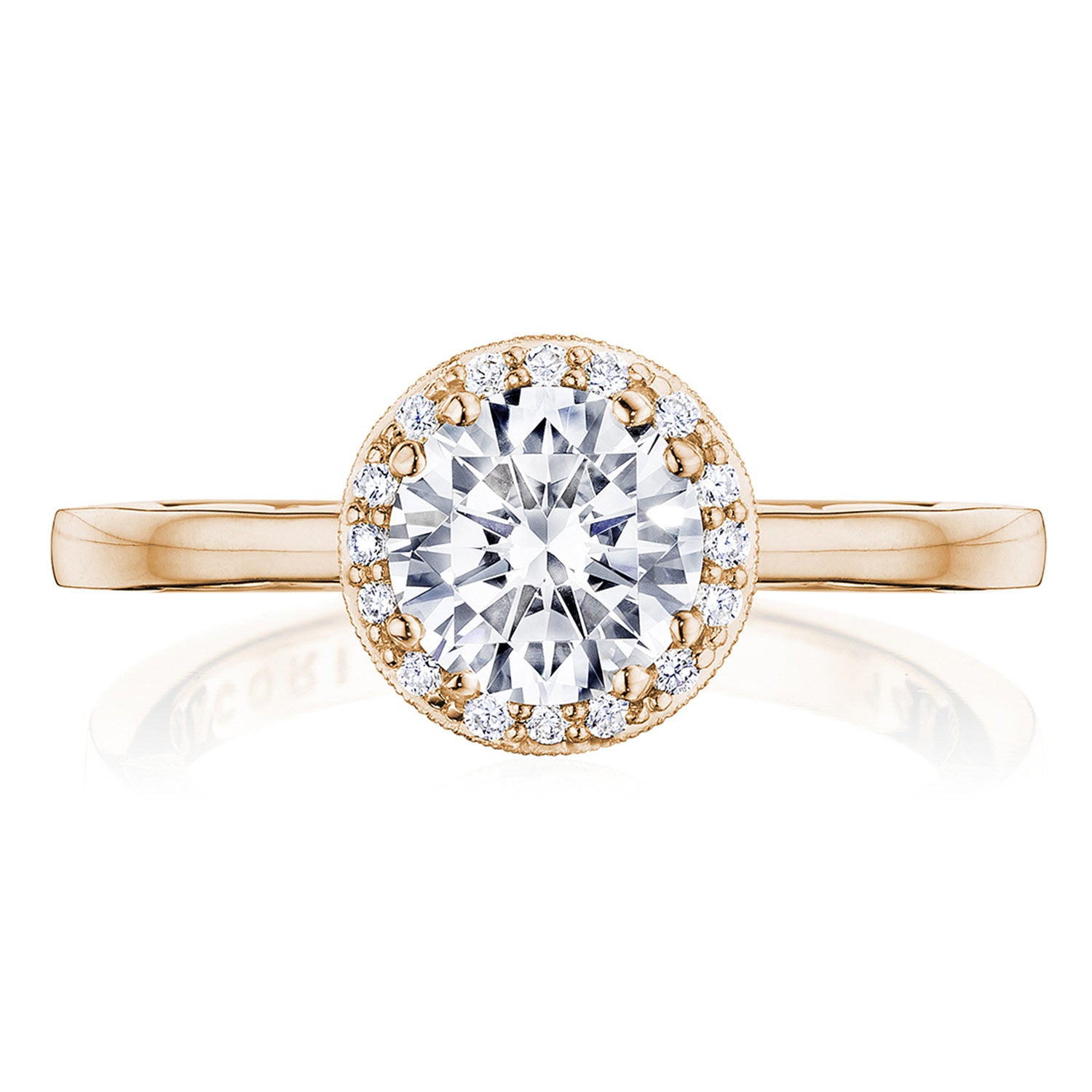 Love in bloom. The beauty in the simplicity of this round cut diamond engagement ring is amplified by the Coastal Crescent inner face, with a diamond-cuddled detailing underneath the crescent.