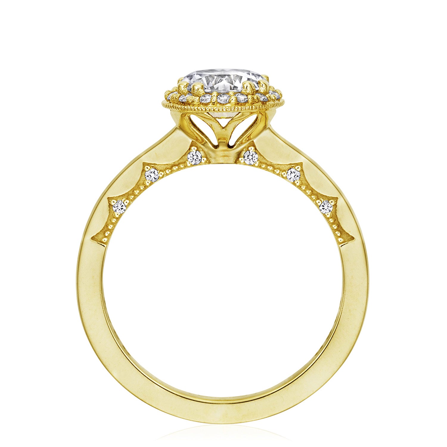 Love in bloom. The beauty in the simplicity of this round cut diamond engagement ring is amplified by the Coastal Crescent inner face, with a diamond-cuddled detailing underneath the crescent.
