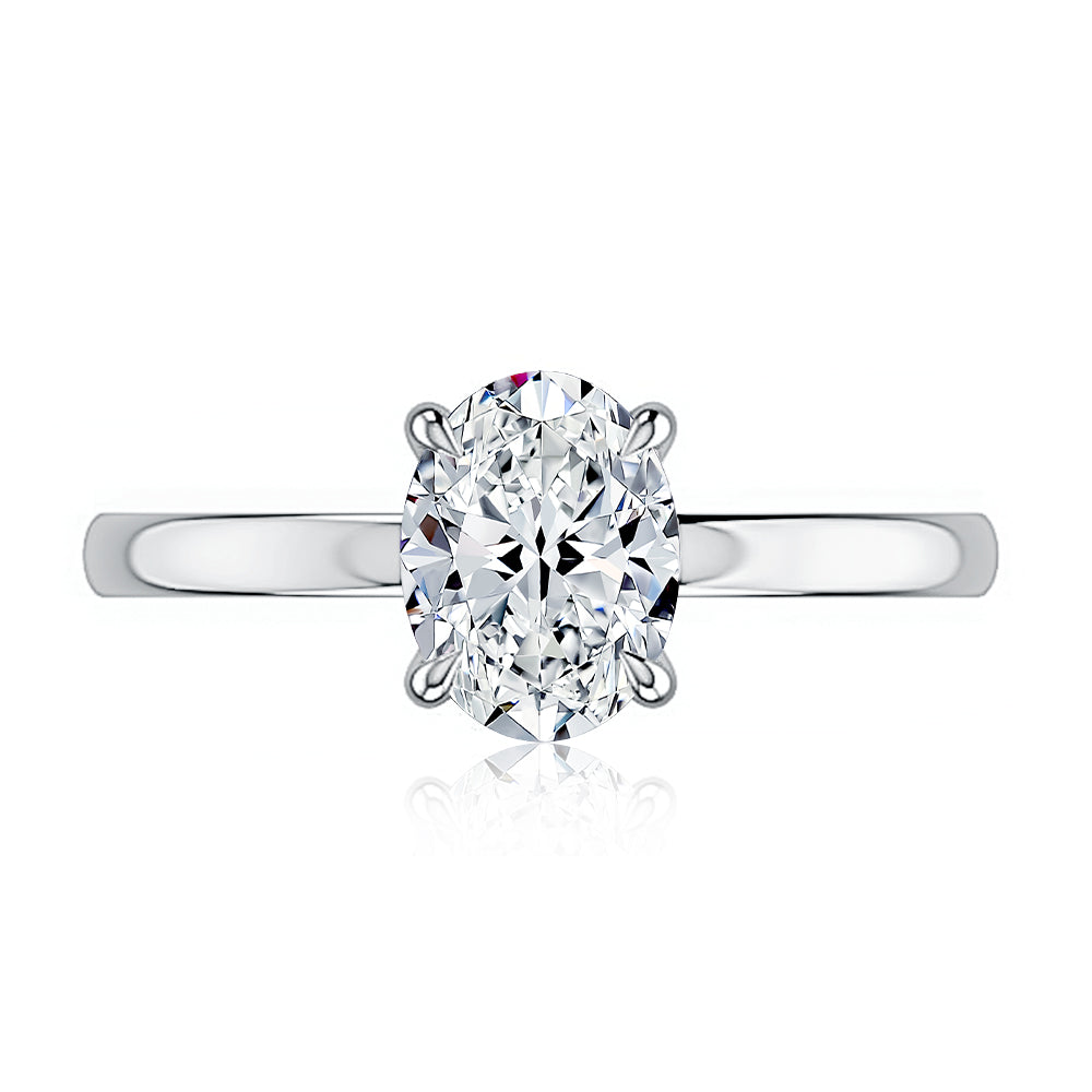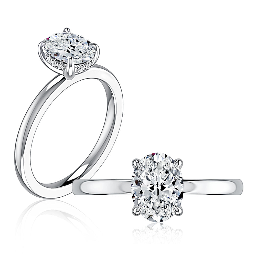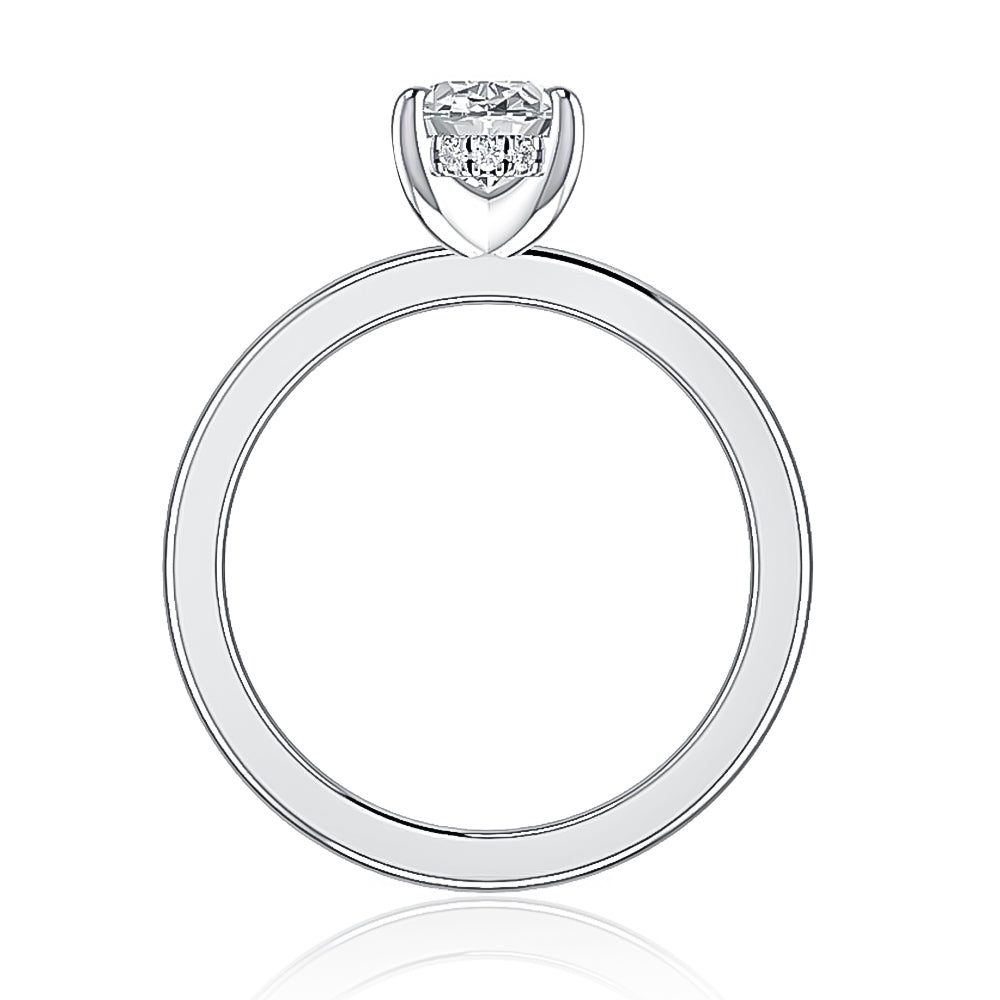 Round Classic flat profile plain solitaire with diamond under halo non cathedral/Hidden