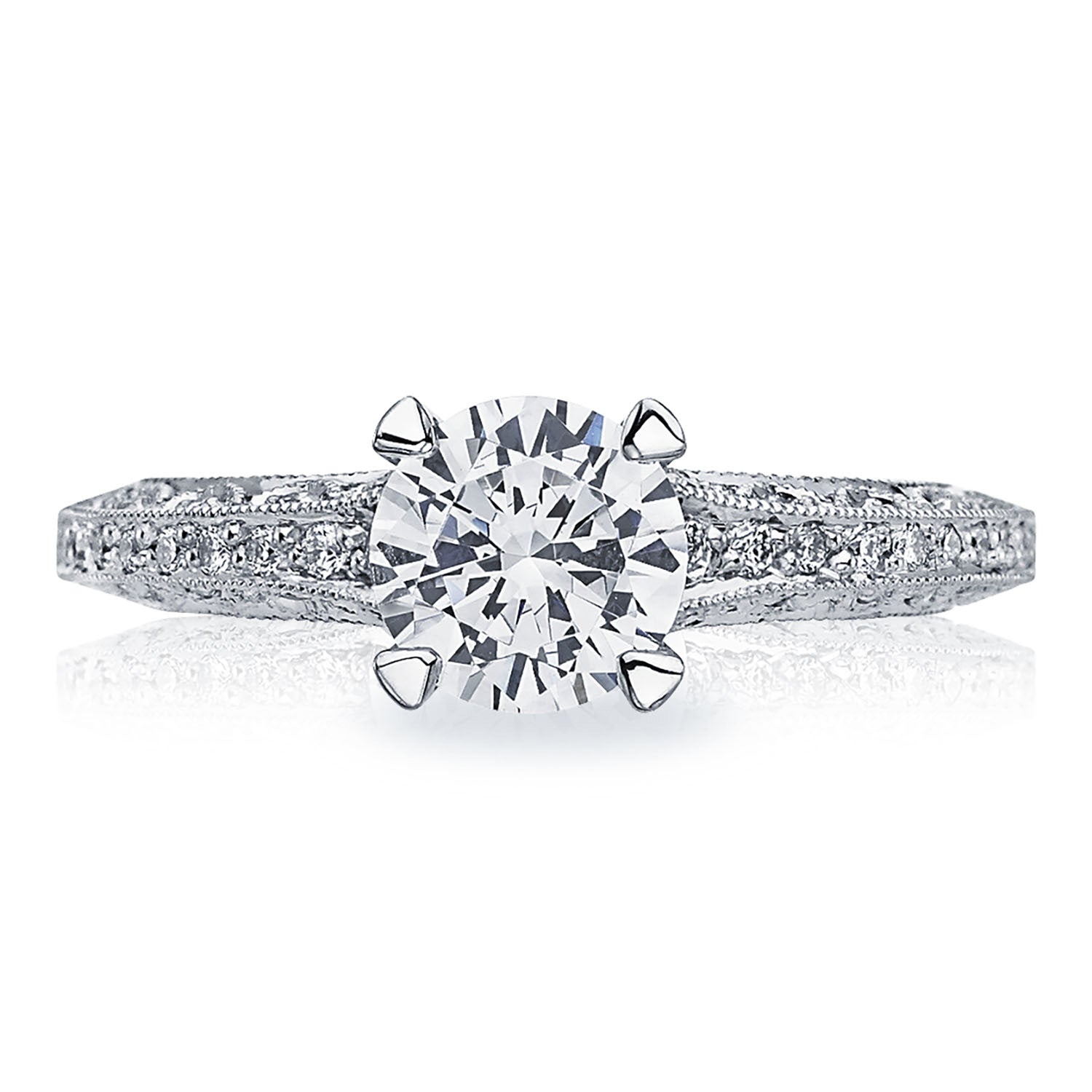 A diamond-studded Classic Crescent inner face with round brilliant diamonds across the ceiling. One signature crescent sits at the resting point, while a Cathedral Foundation adds diamond detailing beneath the crown.