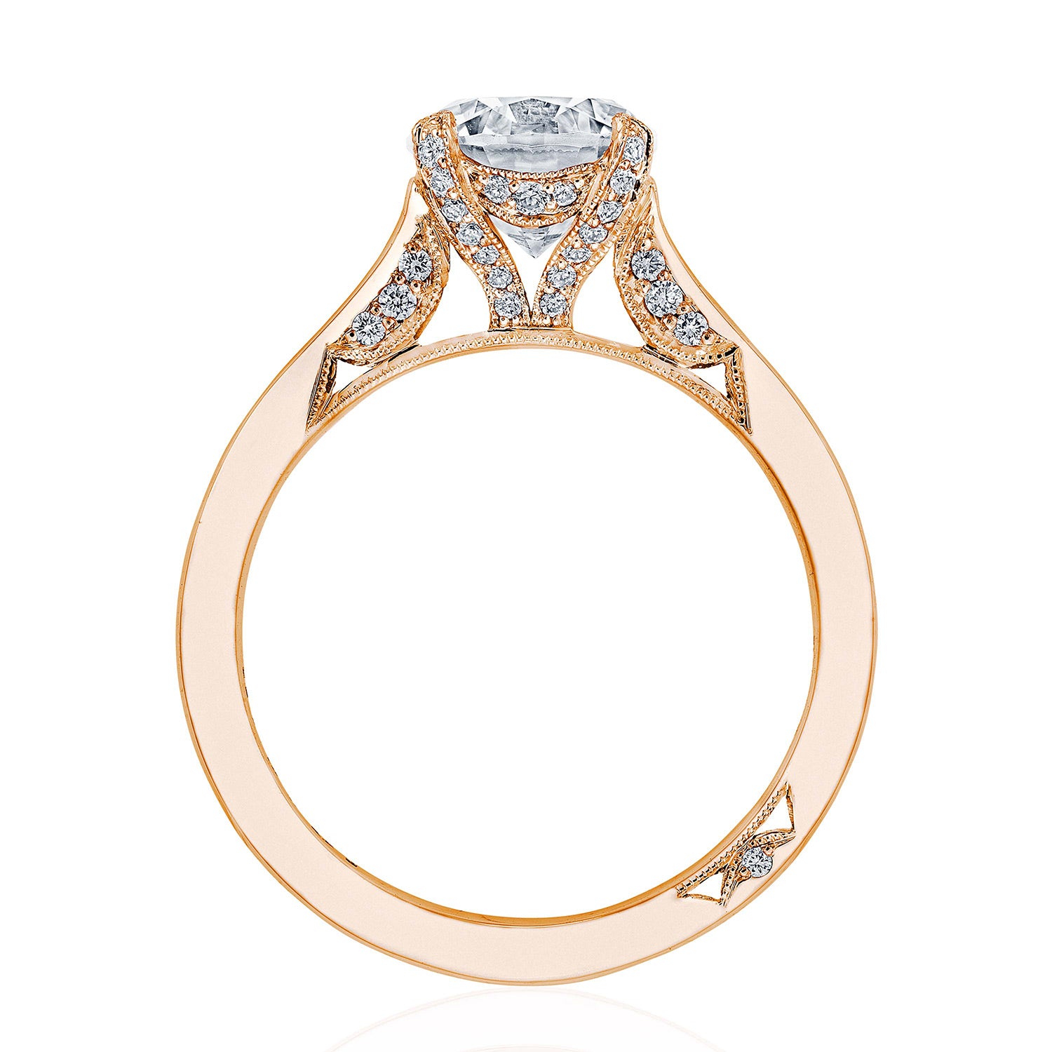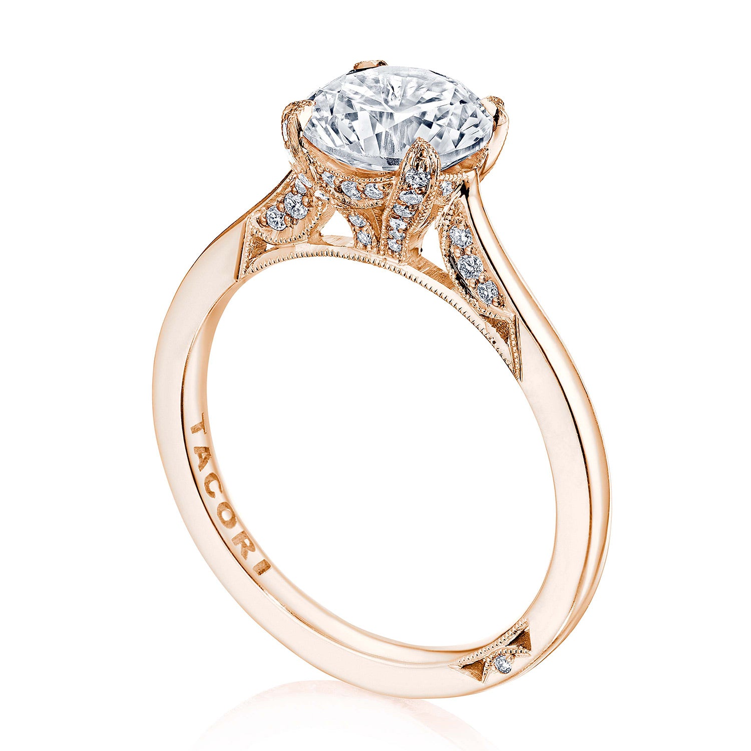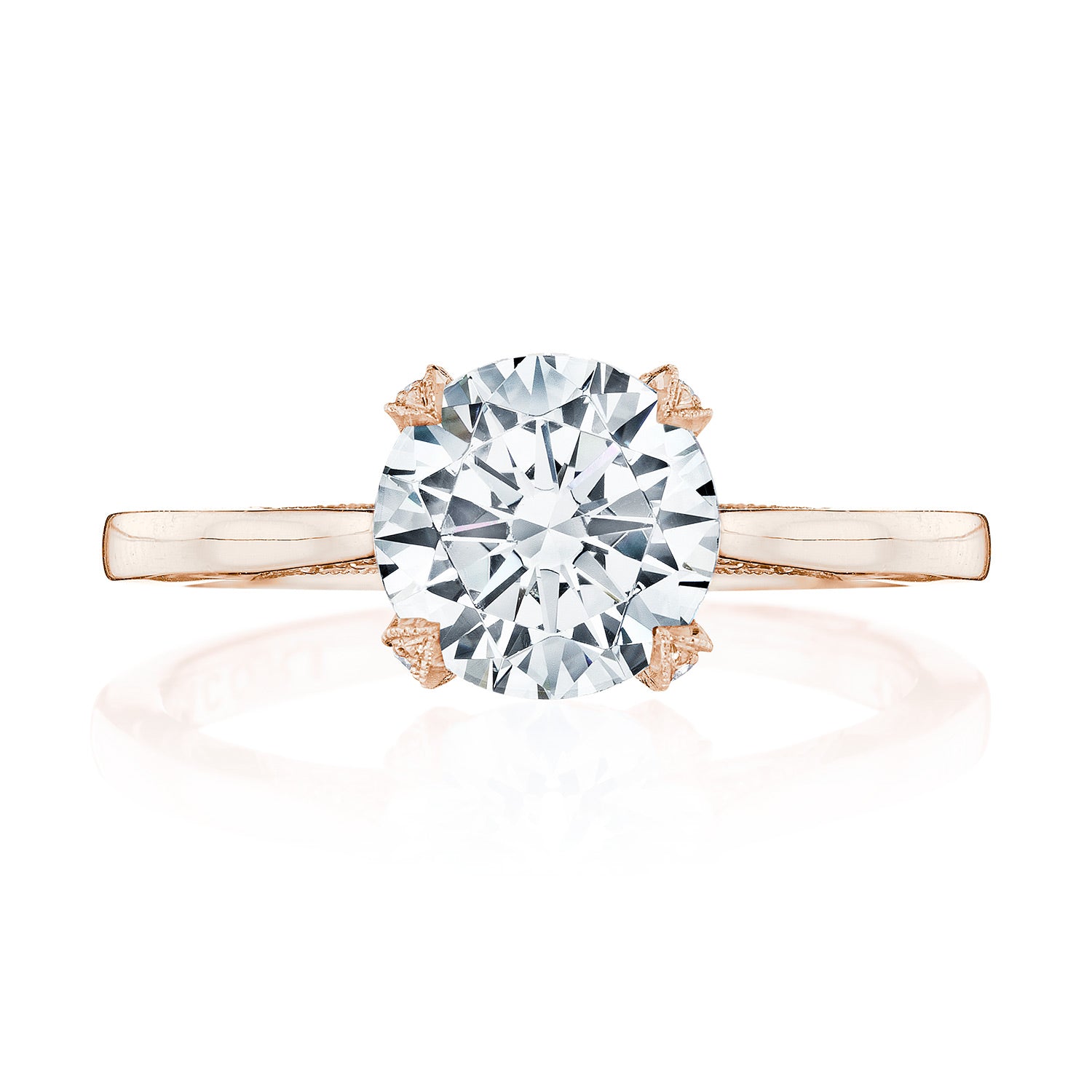 Delicate details and a dainty Cathedral foundation. This Simply Tacori solitaire features an effortlessly modern, hi-polish ceiling and round brilliant cut center.