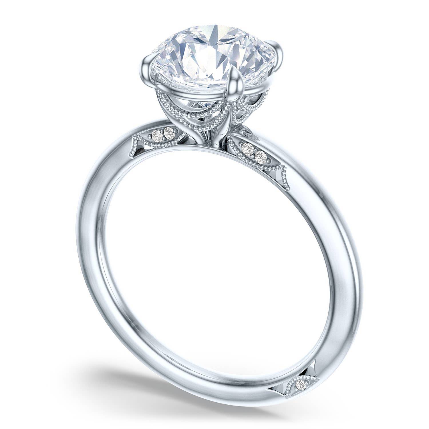 Inspired by the draping found in elegant bridal gowns.This Classic 360 solitaire features a high polish ceiling and a Simply Tacori inner face. Stunning milgrain details evoke couture bridal wear.