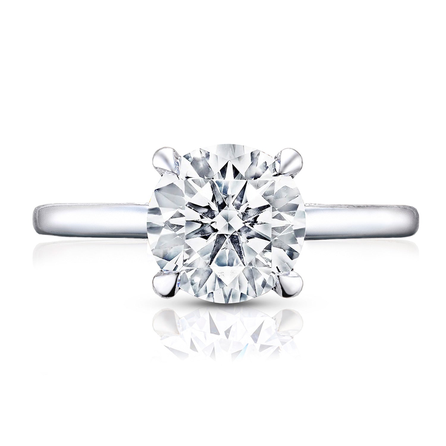 Features a Classic 360 foundation with a high polish finish. The iconic Simply Tacori crescent fabric decorates the ring with delicate diamond and milgrain detailing, while a hidden bloom beneath the crown adds an all-angles sparkle.