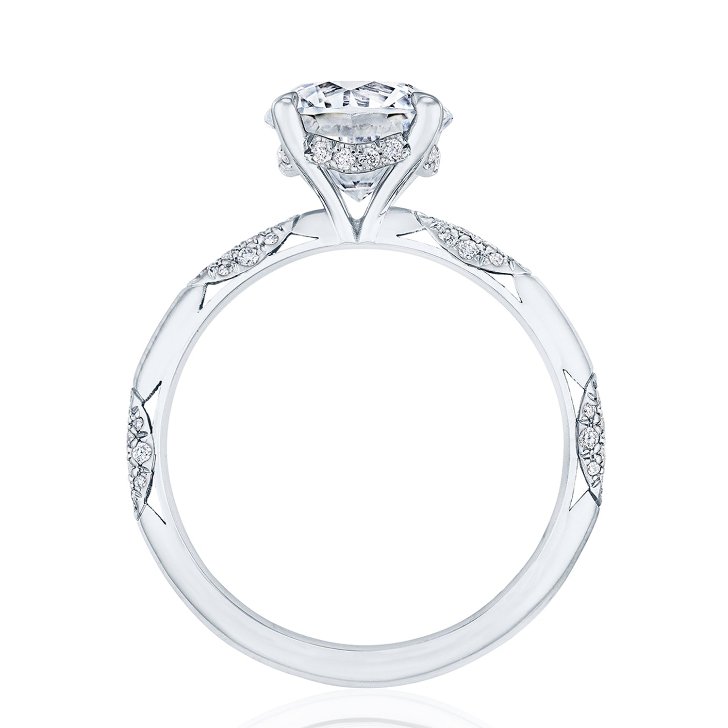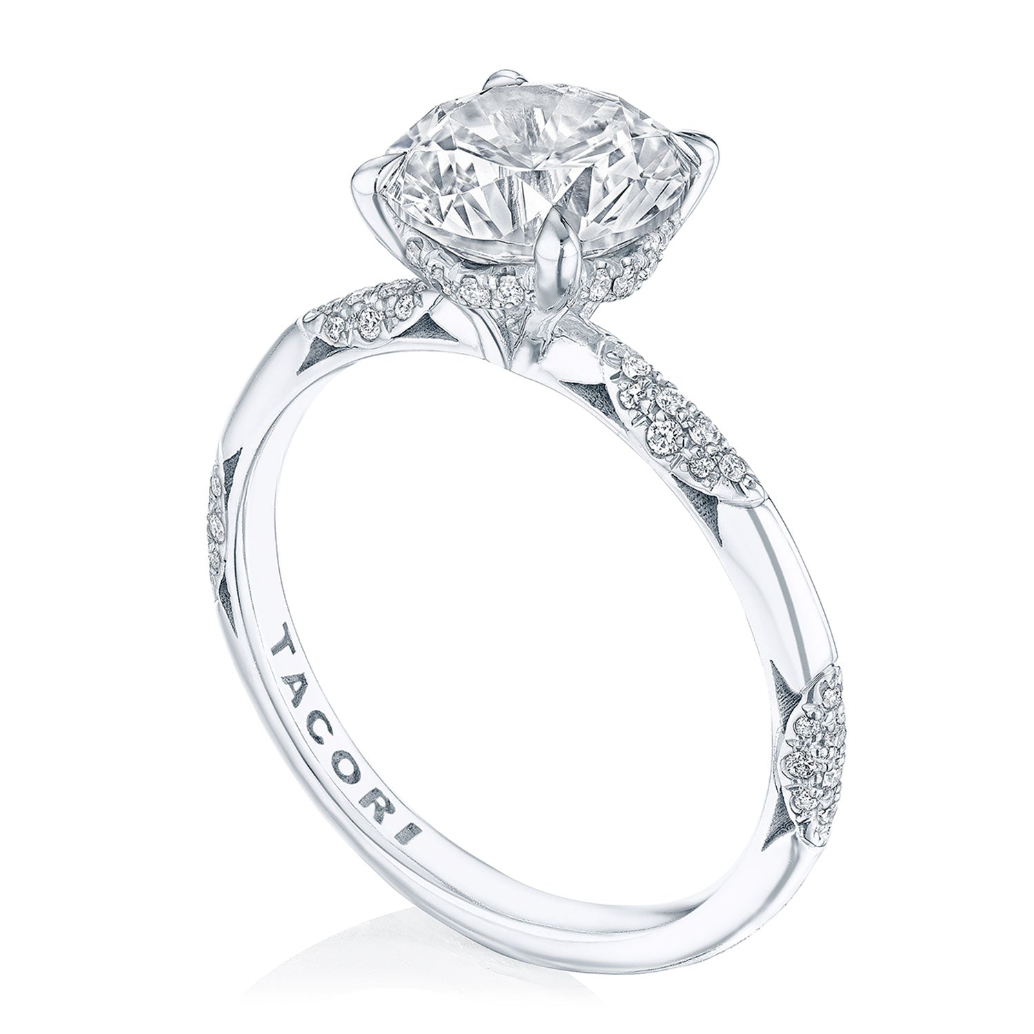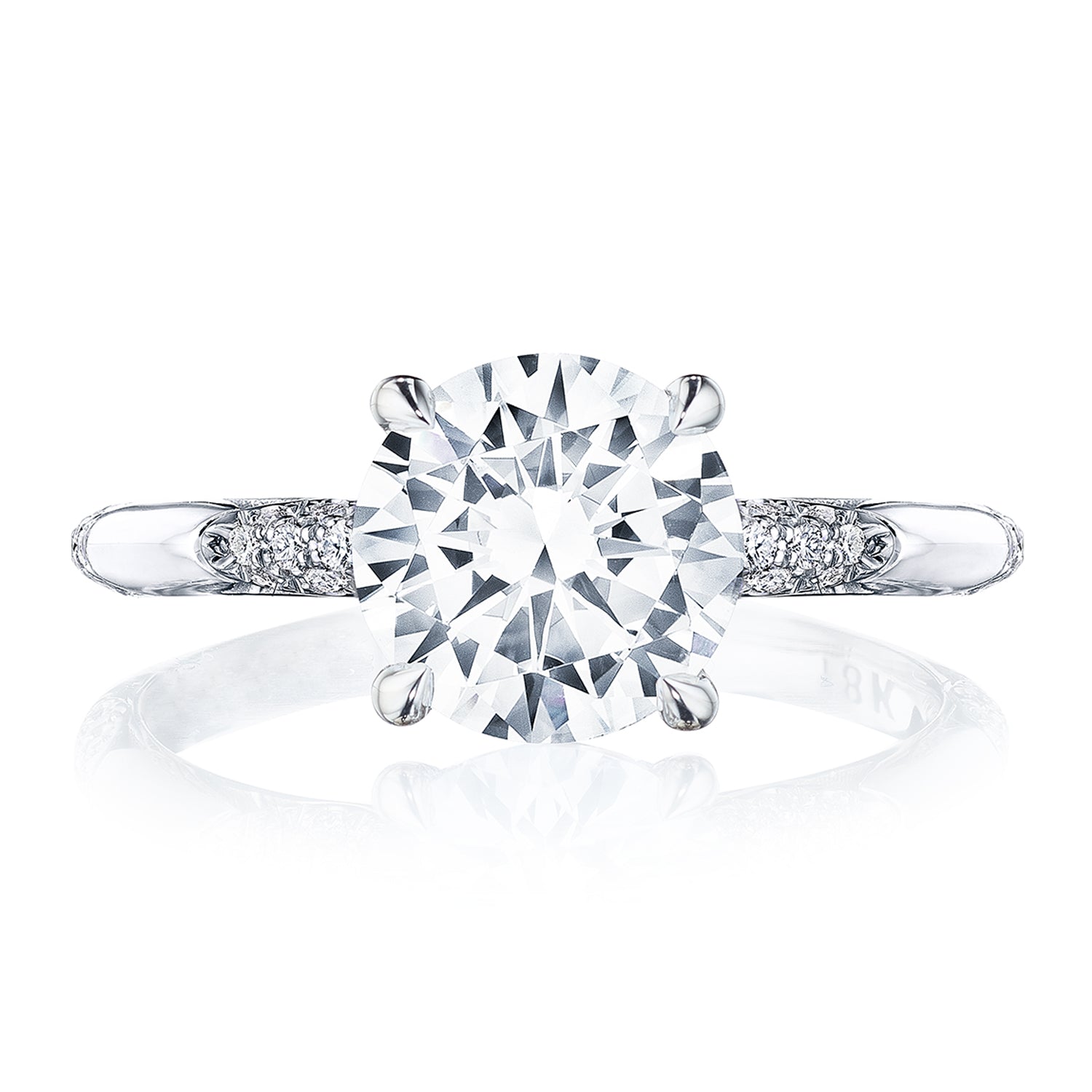 Designed by our Founder, Haig Tacorian, this Classic 360° Foundation, 4-prong engagement ring with a round-brilliant cut center features a touch of sparkle all around the band. Discover the diamond-intense Tacori crescent signature.
