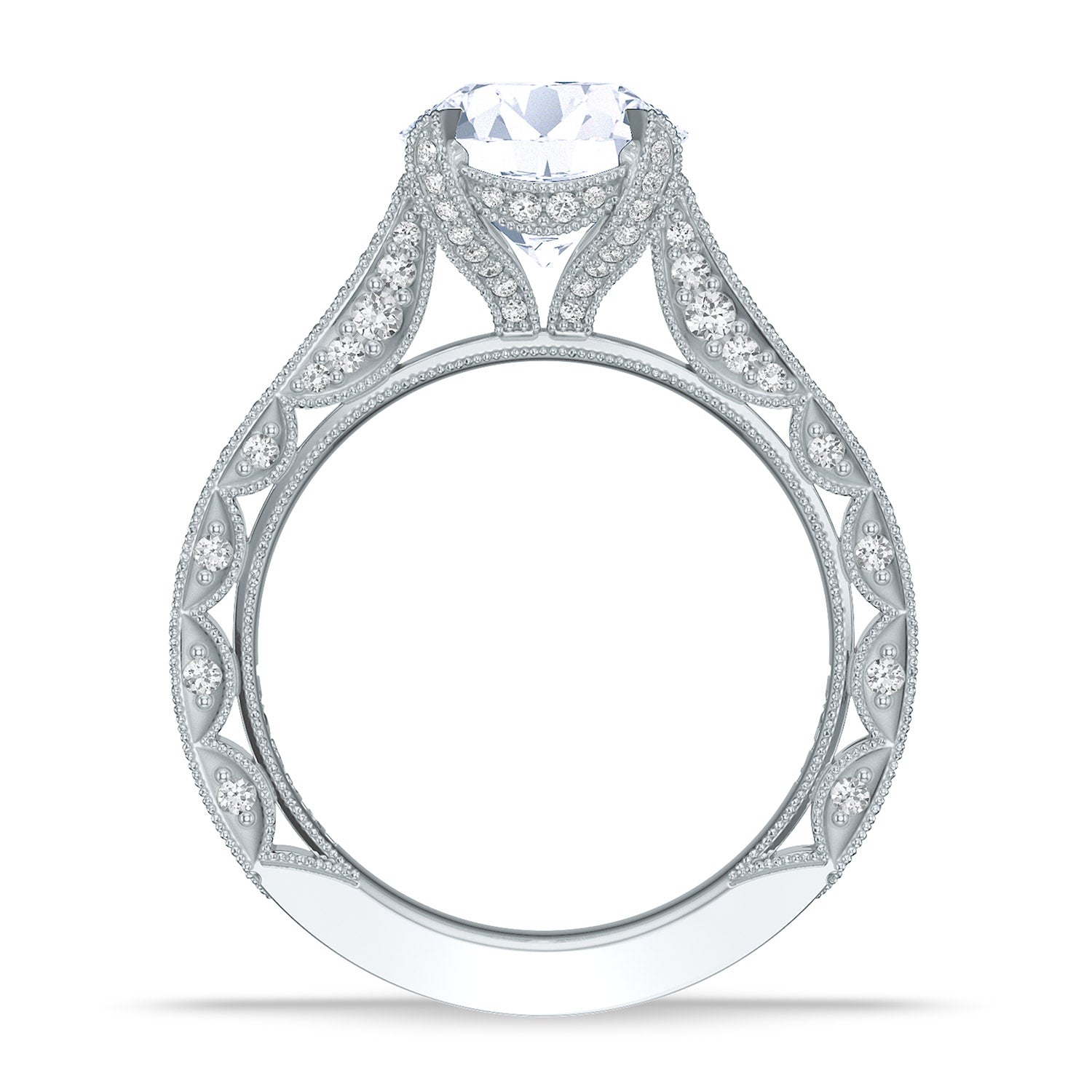 All eyes will be on your center diamond, in this not so simple solitaire, a sleek band with pavé set diamonds brings your round brilliant cut diamond to life, making it worthy of your love.
