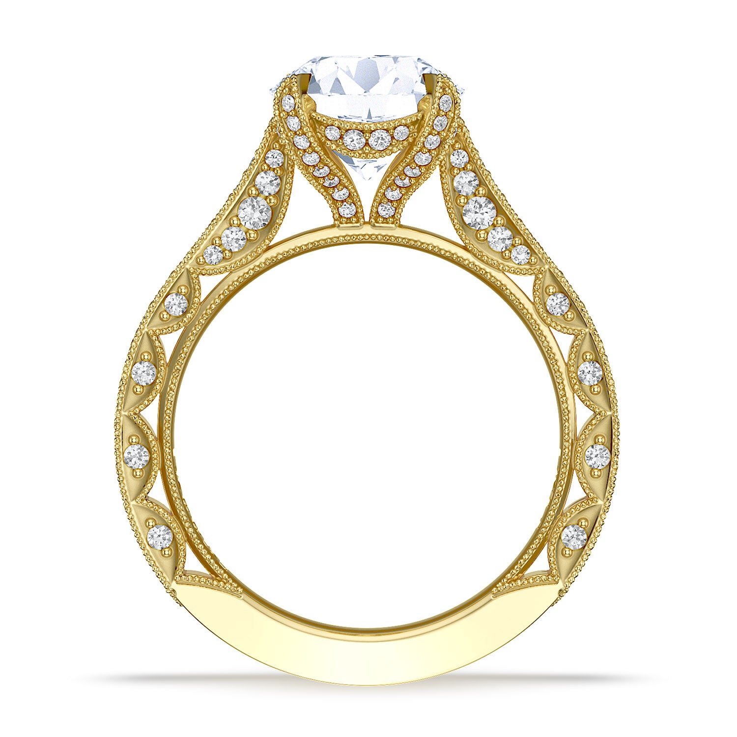All eyes will be on your center diamond, in this not so simple solitaire, a sleek band with pavé set diamonds brings your round brilliant cut diamond to life, making it worthy of your love.